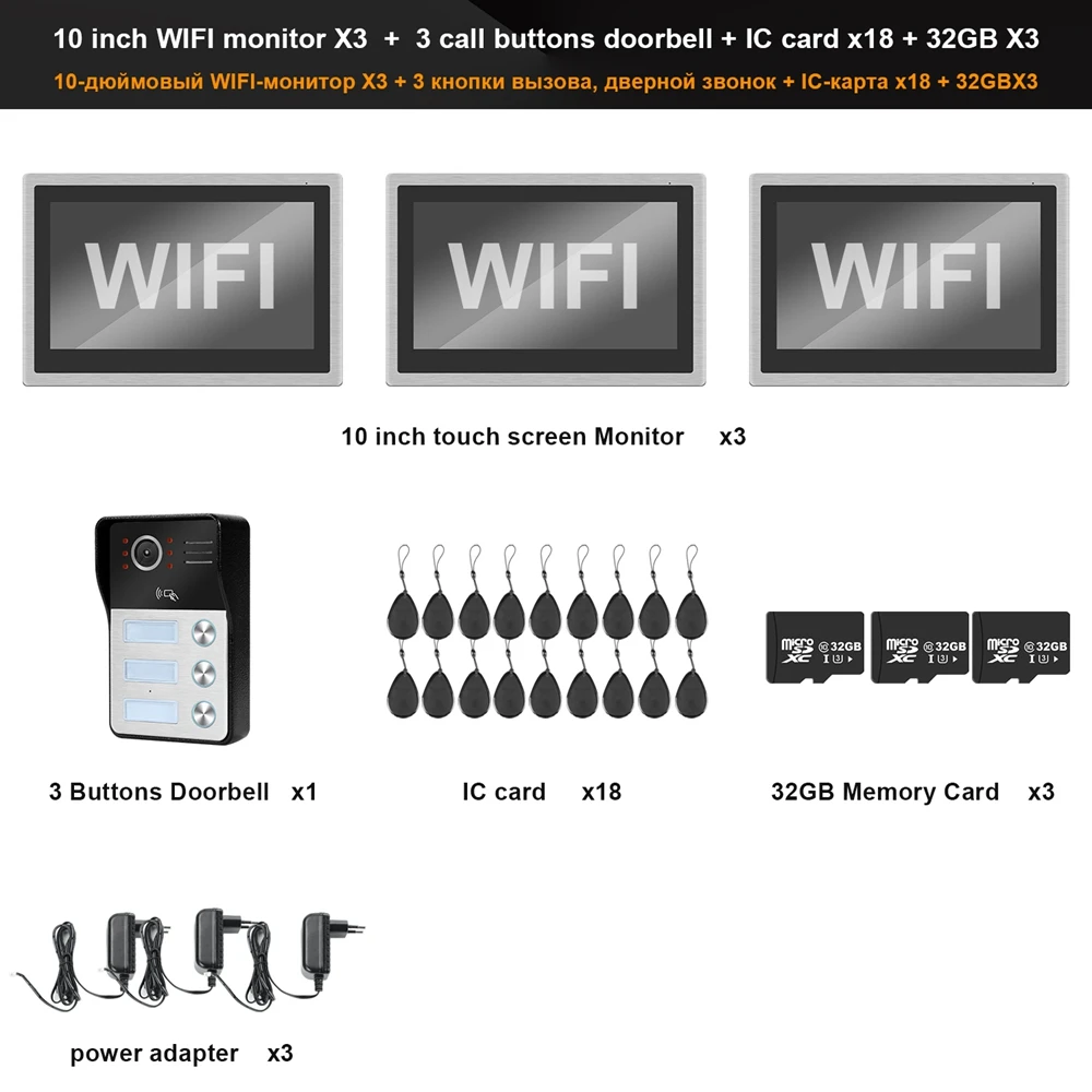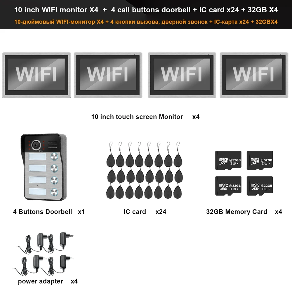 10-дюймовый сенсорный Экран WI-FI видео домофон Системы, 3 стиля меню, запись при обнаружении движения, сигнал тревоги пуш-ап