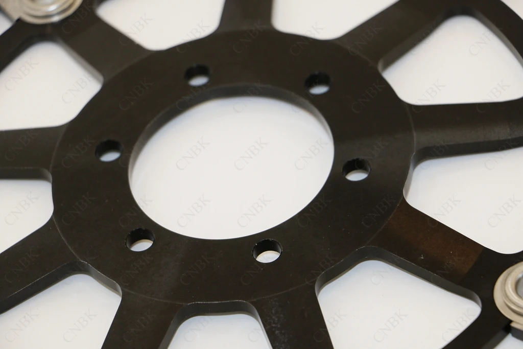 Еще одним преимуществом CNBK роторы, тормозной диск новые отверстия, что делает их гораздо легче и износостойкие по сравнению с их конкурентами. CNBK долгое время находила нужную температуру для производства этих тормозных дисков (слишком низкий = высокий износ, слишком высокий = разрыв материала) И сделал это, среди прочего, благодаря использованию высококачественной нержавеющей стали. Лучшее ощущение торможения, больше торможения, меньше износа, больше дизайна, больше удовольствия от вождения. Ступица из алюминия соединена с Тормозным Диском с помощью квадратных приводных плавателей CNBK.