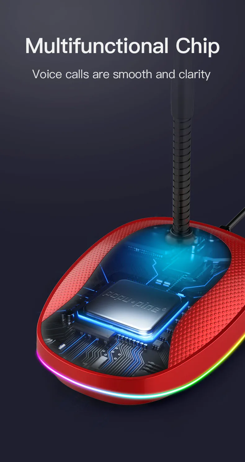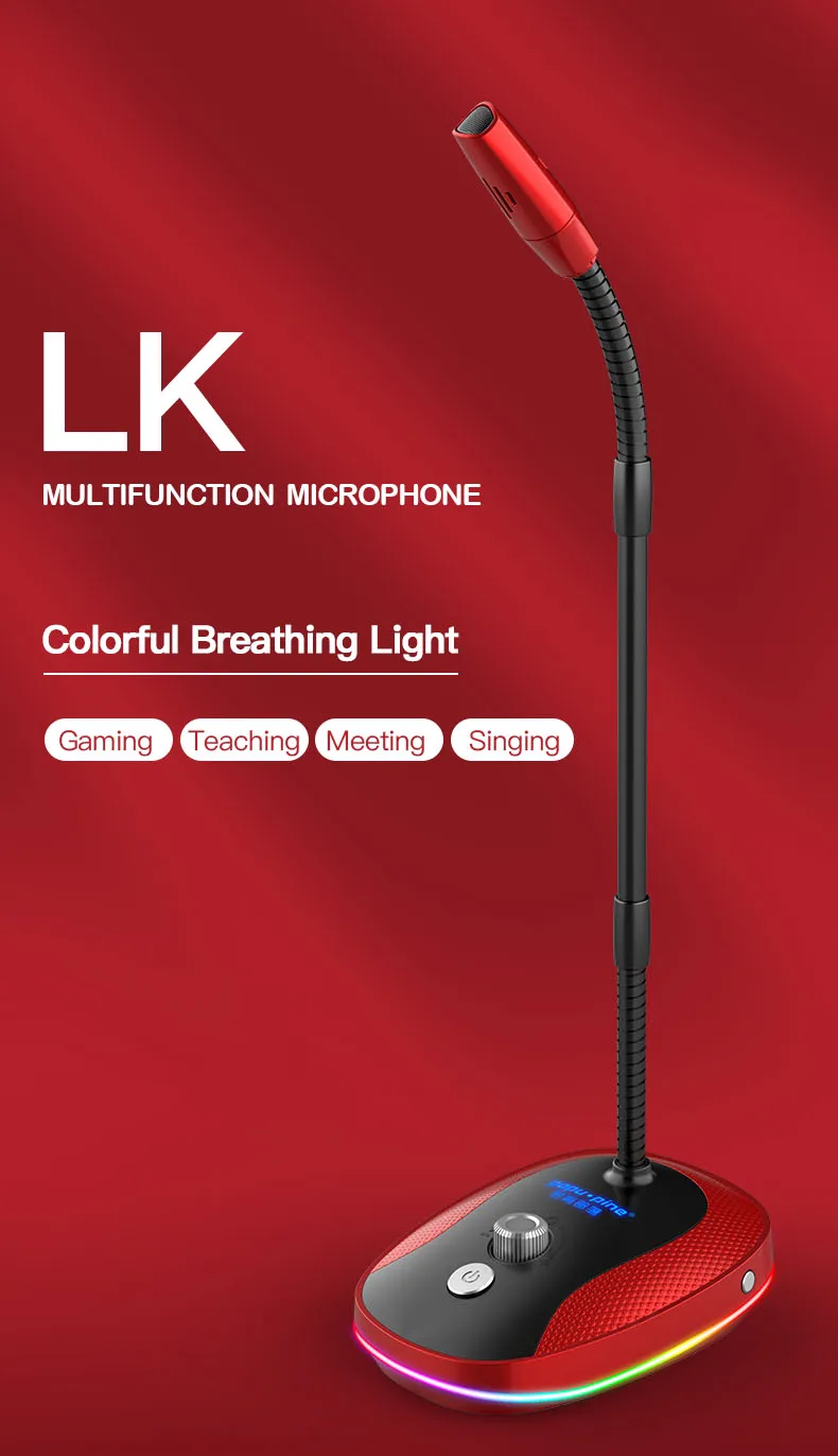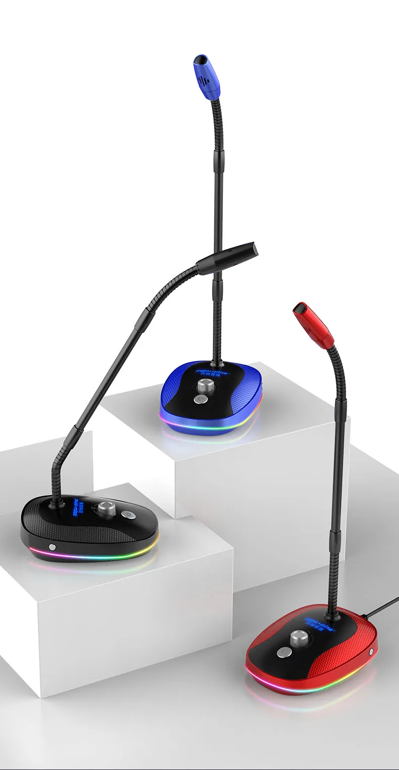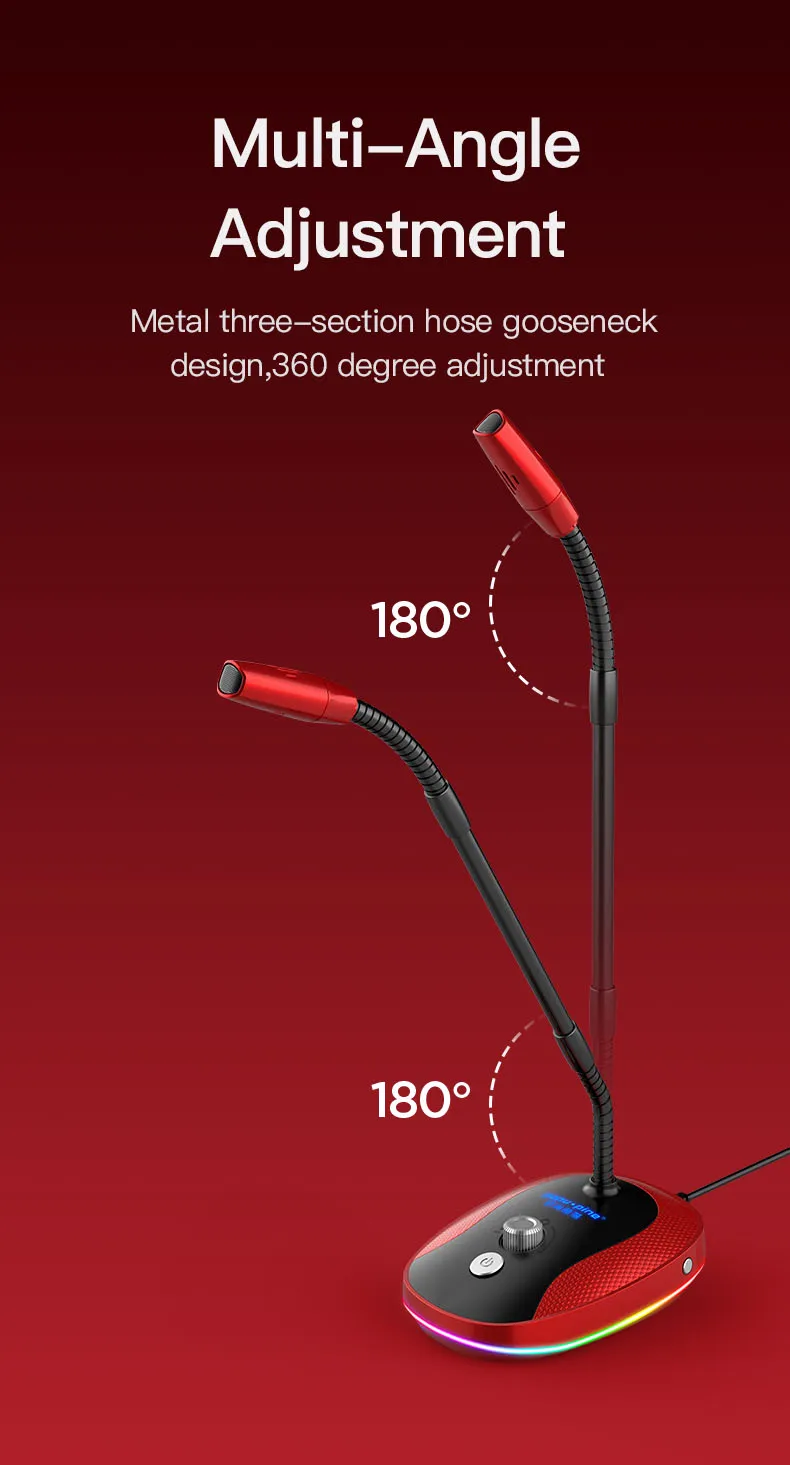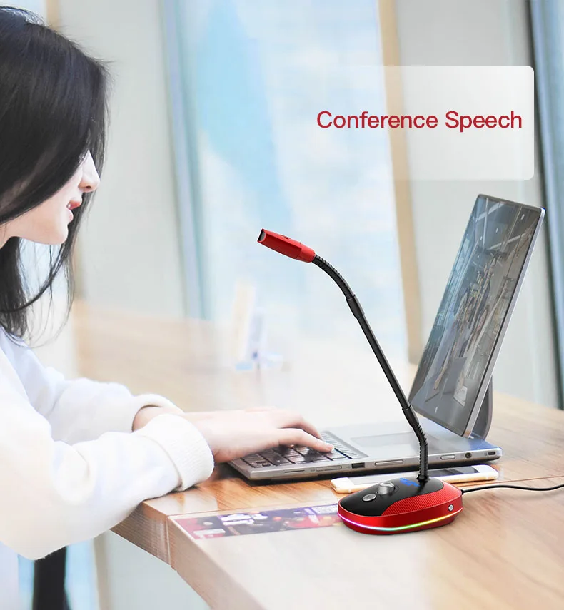 Простой и красивый ---Мы разработали этот настольный микрофон, чтобы вы могли с гордостью иметь его на вашем столе, он использует высококачественные материалы. Стержень микрофона компьютера полностью регулируется.