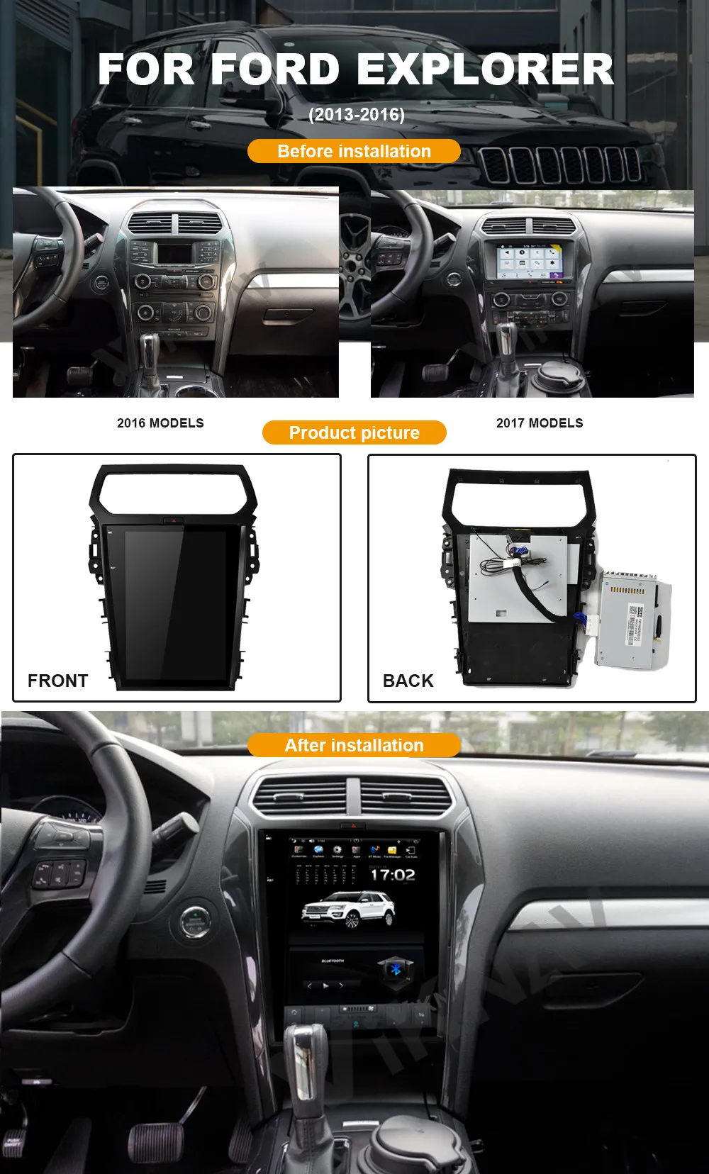 Вертикальный экран для автомобиля GPS навигация для-Ford Explorer 2013-2016 12,1 дюймов Автомобильный мультимедийный плеер головное устройство лента recordeR