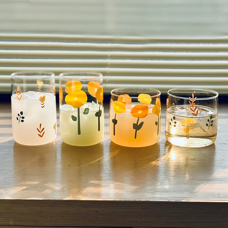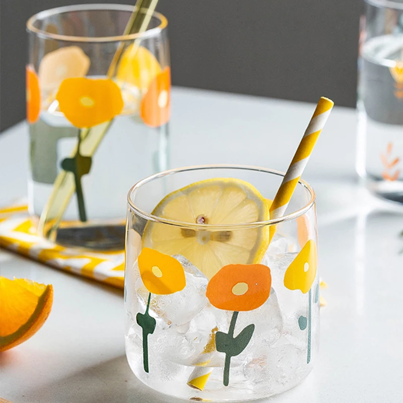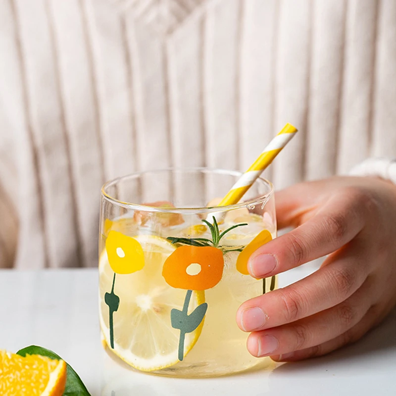 Стеклянная кружка для кофе, молочный чай, кофейная чашка, кристально прозрачные кружки, домашний бар, посуда для напитков...Купить сейчасКреативная стеклянная кофейная чашка с цветочным принтом, чайные соки с молочной колой, стеклянная чашка для пива, для дома, кухни, офиса, термостойкая посуда для напитков