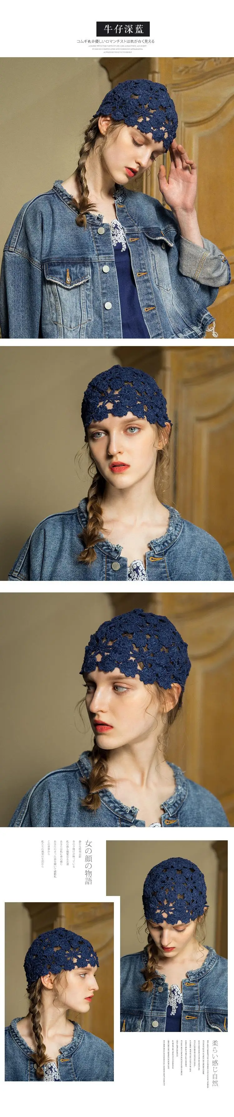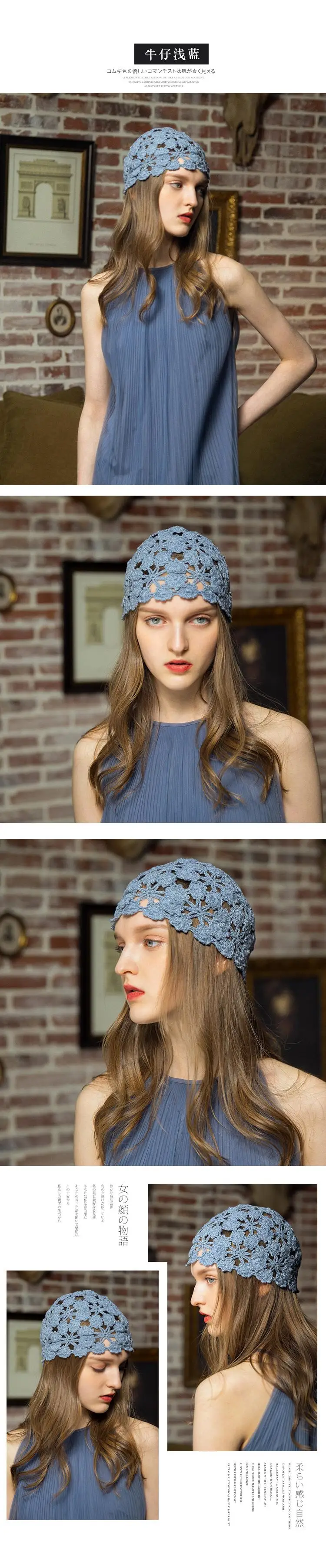 Женская вязаная шапка ручной работы с цветочным узором, тонкая шапка с черепами, весенне-летняя дышащая вязаная шапка для отдыха