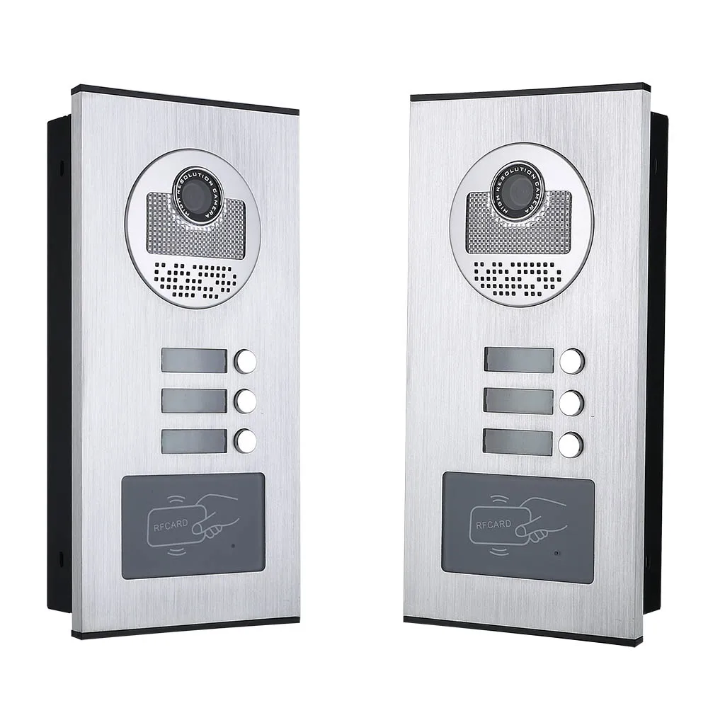 1 Наружный блок (3 кнопки камеры) 3 x внутренний блок (монитор с WIFI) 3 x DC15V адаптер 6x4-ядерный соединительный кабель с разъемом USB 4 х 2-ядерный соединительный кабель 5x125 кГц RFID карты 2 x посылка винтов Руководство пользователя-1 шт.;