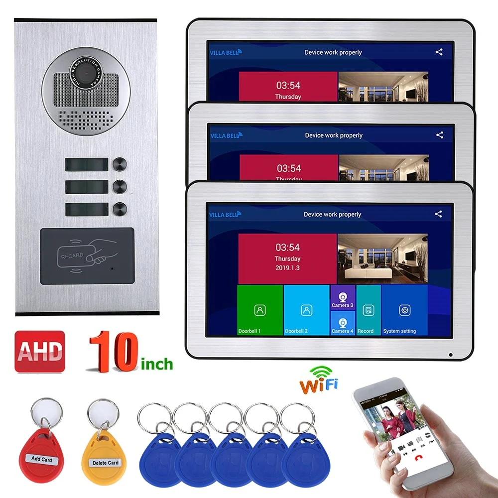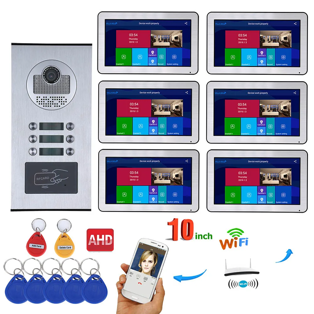Система видеодомофона s 3/6 квартиры 10 дюймовые часы с записью времени Проводная AHD 720P видео домофон система RFID IR-CUT камера