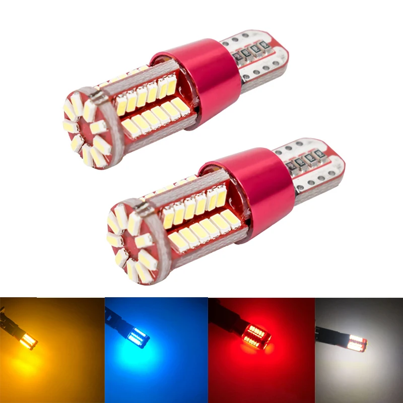 2 шт. T10 светодиодный W5W 194 168 Canbus Error Free для очистки автомобиля чтение светильник лампы Авто габаритный фонарь 57SMD 3014 белого и желтого цвета красные, синие 12V