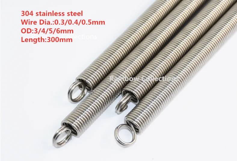 2 шт./лот 304 нержавеющая сталь пружины растяжения диаметр провода 0,3-0,5 мм/наружный диаметр: 3/4/5/6 мм/длина 300 мм Натяжная пружина