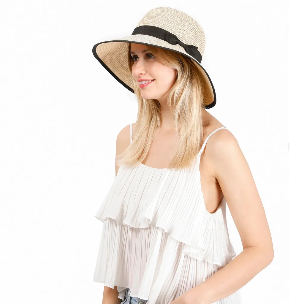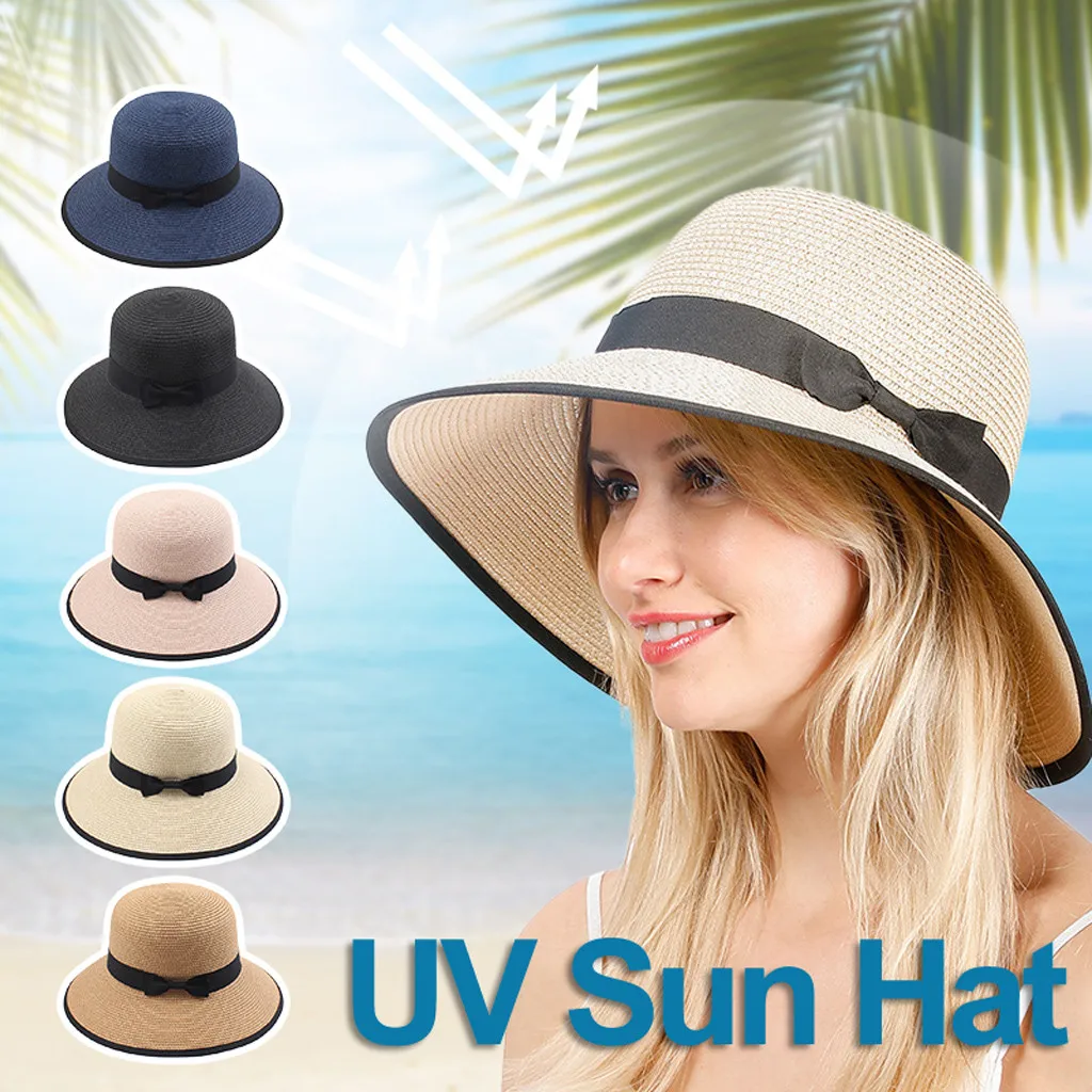 Женская Солнцезащитная соломенная шляпа, летняя шляпа, складывающиеся пляжные шляпы флоппи UV UPF50 Caps