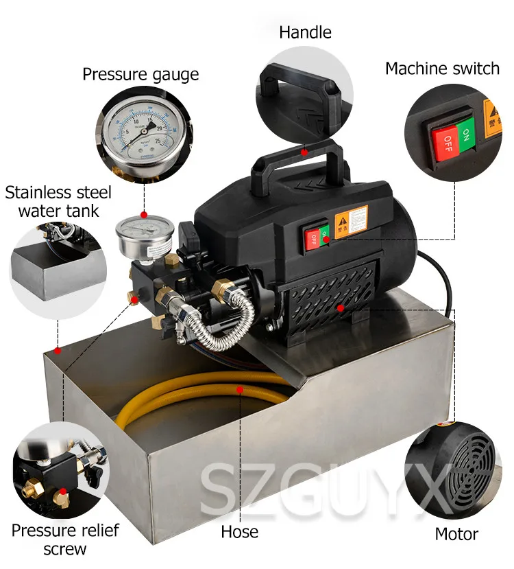 Область применения: все виды сосудов под давлением, трубопроводов, клапанов, паровых котлов и т. д. используются для гидравлических испытаний давления и оборудования для получения жидкости высокого давления в лаборатории.