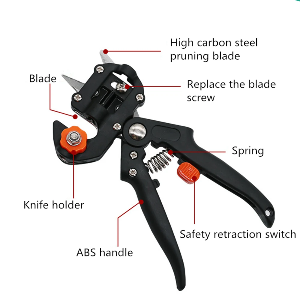Материалы: углеродистая сталь, АБС и алюминий Параметры прививки: ветка или диаметр рассады в пределах 3-13 мм Лезвия для обрезки толщиной 3 мм