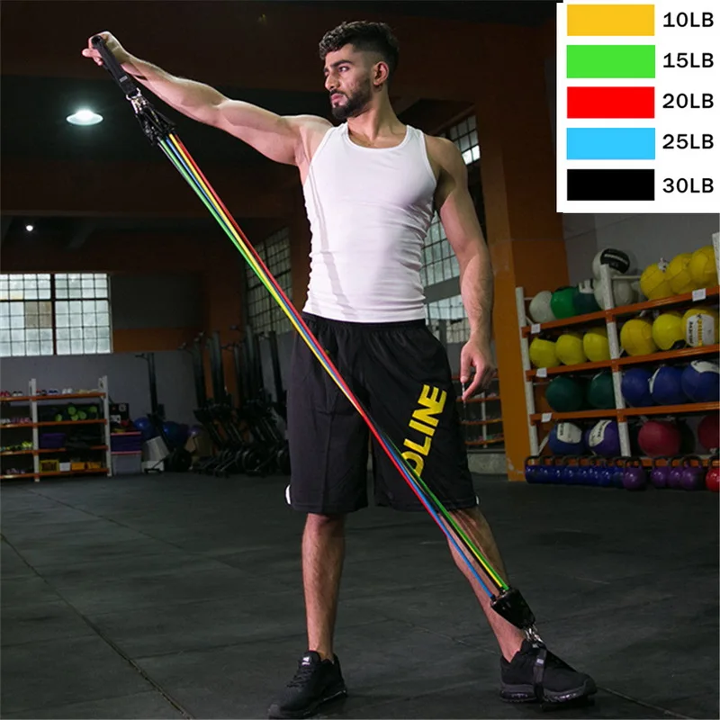 Регулируемые уровни сопротивления: каждый диапазон отличается по цвету и уровням сопротивления: желтый-10 фунтов, зеленый-15 фунтов, красный-20 фунтов, синий-25 фунтов, черный-30 фунтов, С общим весом сопротивления 100 фунтов.