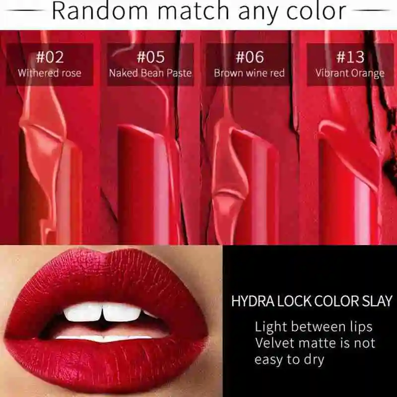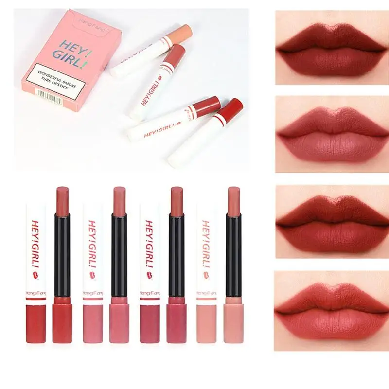 4 шт. в виде сигареты матовая бархатная водостойкая стойкая трубчатая Помада для губ красная помада для губ женский Макияж для губ