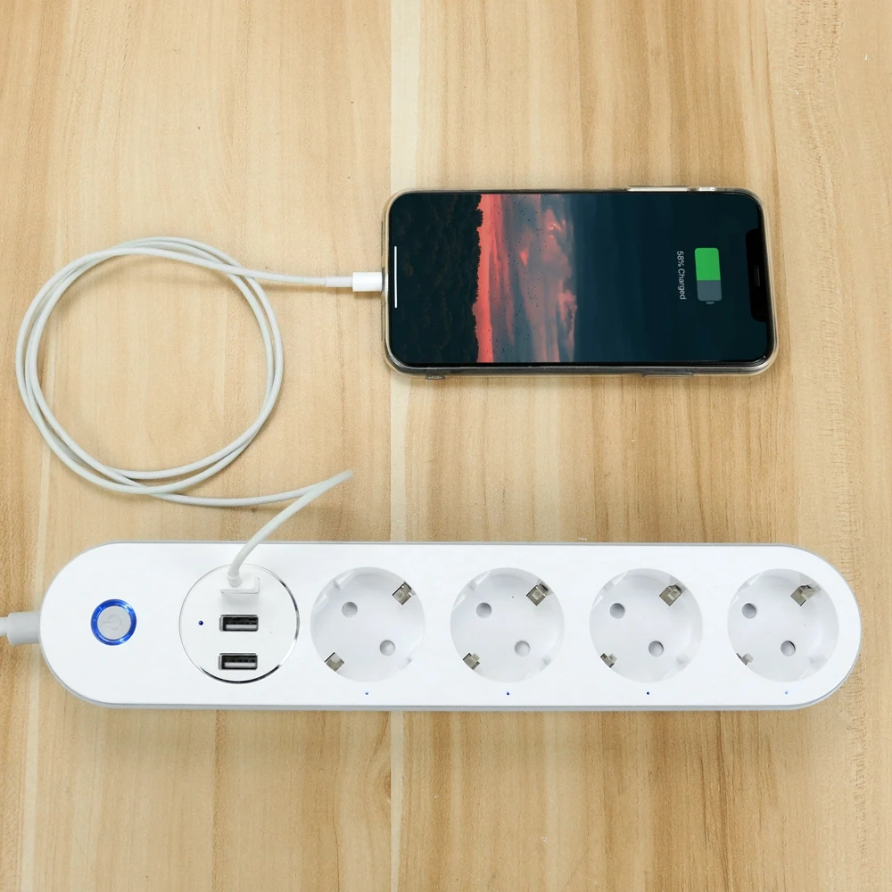 Используйте режим полного управления или Управляйте 4 интеллектуальными розетками ЕС индивидуально со своим смартфоном по сети Wi-Fi / 4G, где бы вы ни находились, но 3 usb-порта можно управлять только вместе ВКЛ или ВЫКЛ.