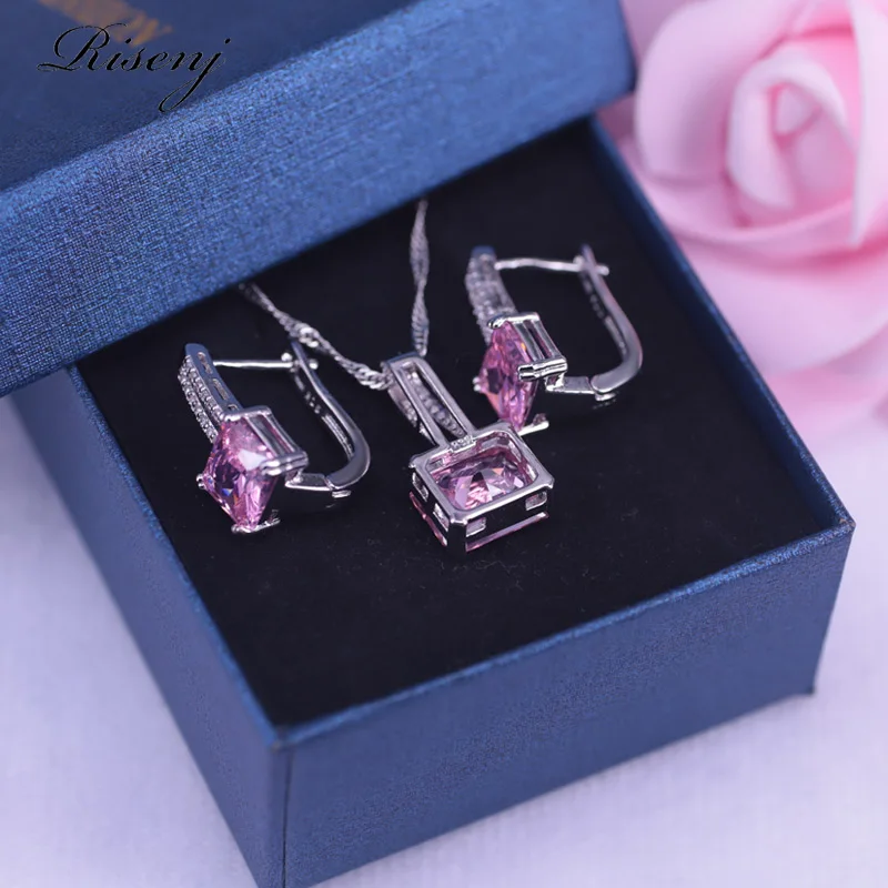 Серьги кольцо ожерелье серебро 925 набор для женщин квадратный Дубай стиль для женщин лучший подарок на свадьбу вечерние/помолвку/годовщину