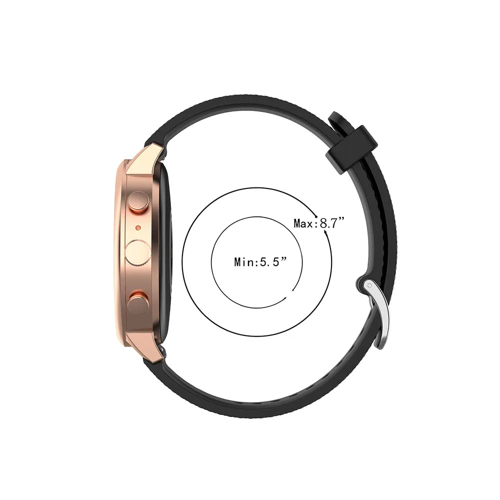 1. Universal strap fit all 20mm width smartwatch 2. Material: soft silicone band with metal buckle clasp 3. Comfortable wearing , no harm for our skin 4. Easy install with quick release pin 5. Fit wrist 5.5-8.7 inch, suitable 99% woman or man