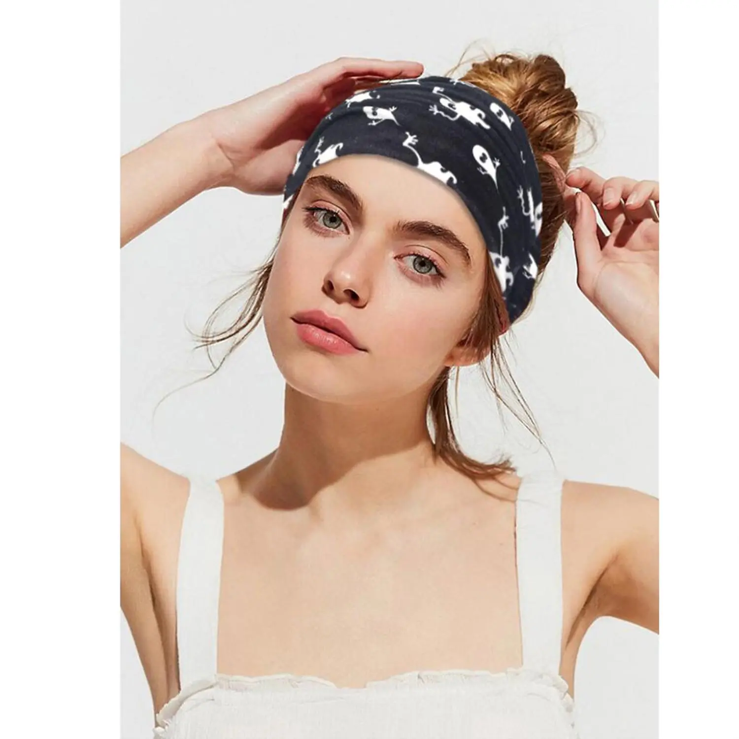 Женские повязки на голову для йоги, эластичные повязки на голову с принтом черепа, морской рыбы и цветов