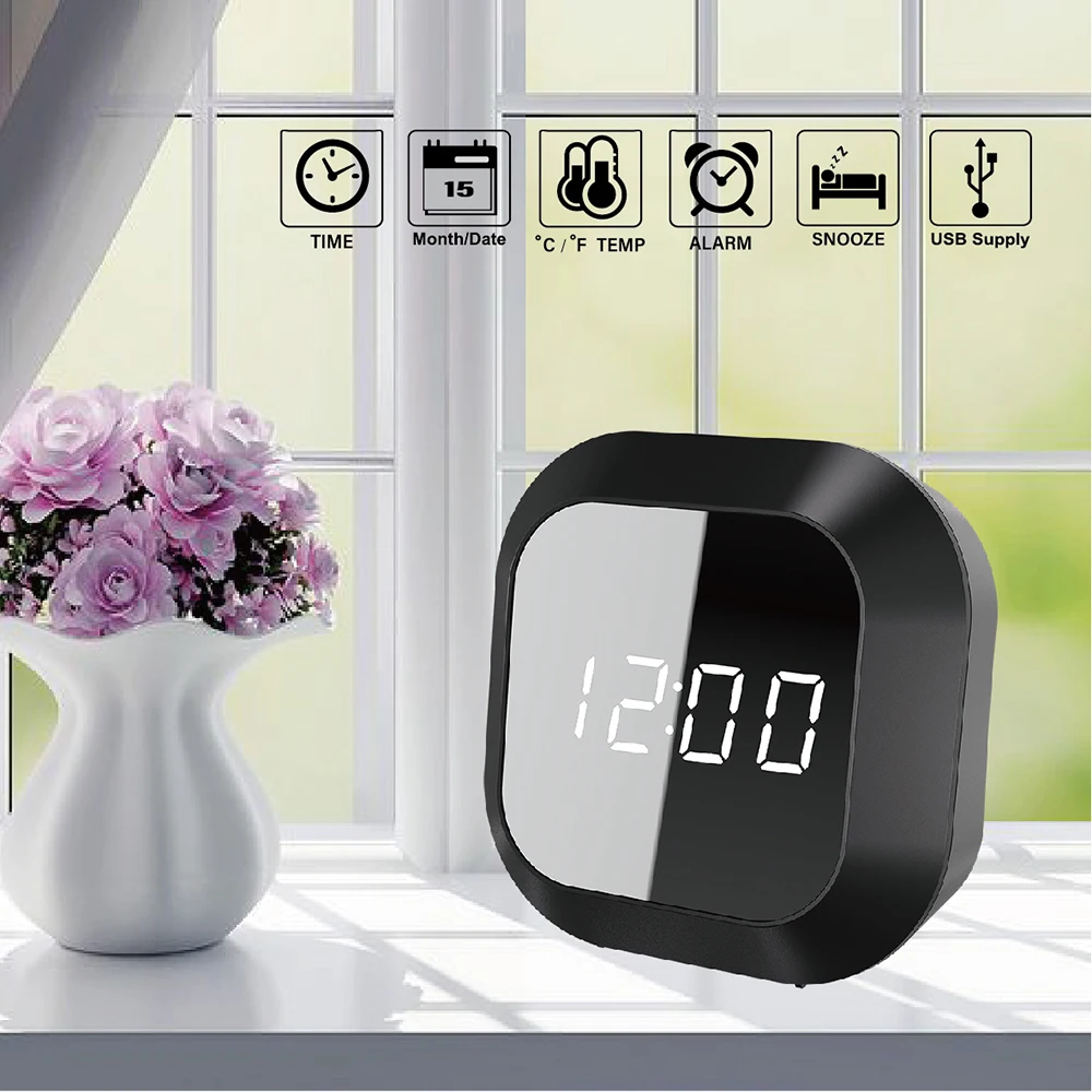 【 Светодиодный экран и зеркальная поверхность 】: светодиодный экран с зеркальной поверхностью показывает четкое и четкое время для вас. Зеркальный будильник со стильным внешним видом не только идеально подходит для домашнего декора, но также может использоваться как зеркало, когда вам нужно 【Dimmable Яркость & ночного режим】: светодиодный экран обеспечивает 3-х уровневый Яркость. Яркость можно регулировать вручную или автоматически менять на светильник. 【Функция будильника с программируемым повтором 5- 60 mins】: Наслаждайтесь еще несколькими сладкими снами благодаря удобной функции повтора будильника. Иногда это немного лишнего сна, это все, что нужно, чтобы проснуться и почувствовать себя обновленным. 【Различные способы зарядки: питание от USB кабеля (в комплекте) и батареек AAA (в комплект не входят). Оба они легко доступны. Время в 12/ 24 часа в сутки, сегодня дата 、 температуры в круг дисплея. Часы имеют подставку, чтобы они могли сидеть на любой столешнице или настольной поверхности.