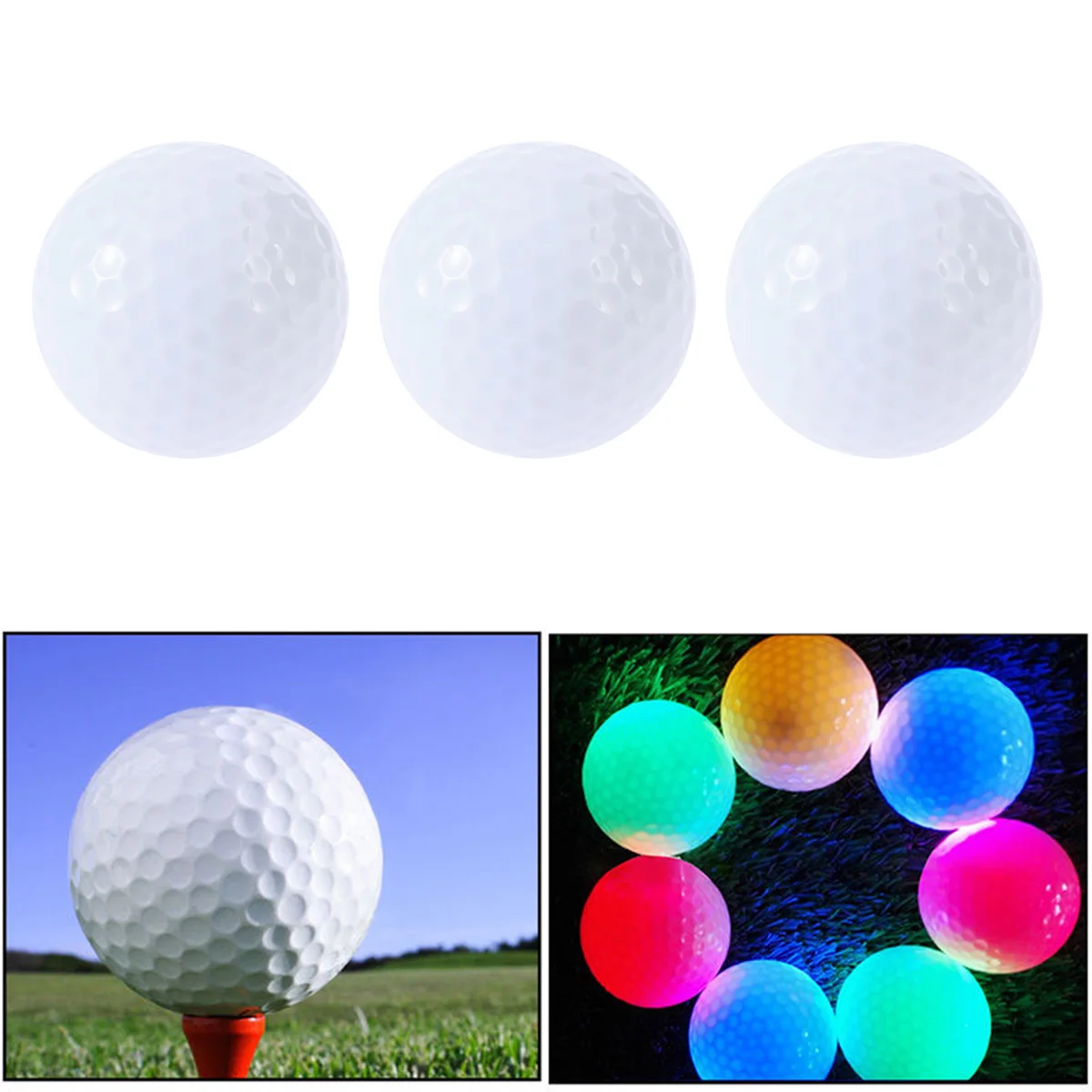 3 шт. святящийся ночью мячи для гольфа светодиодный светильник вверх мячи для гольфа светится в темноте яркий долговечный многоразовые ночные мяч для гольфа (красный + розовый + зеленый)