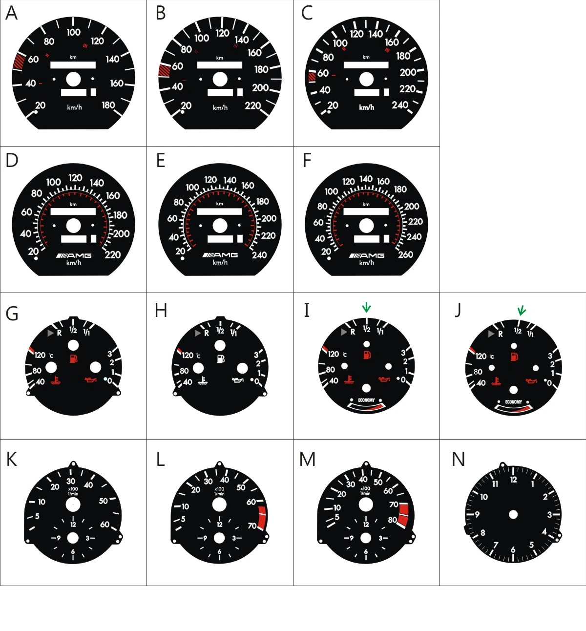 Совместимость: W201 (190E) -Пожалуйста, обрежьте нижнюю часть спидометра примерно 7 мм, чтобы соответствовать размеру.