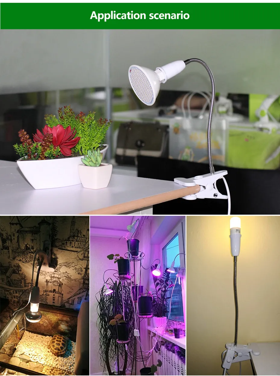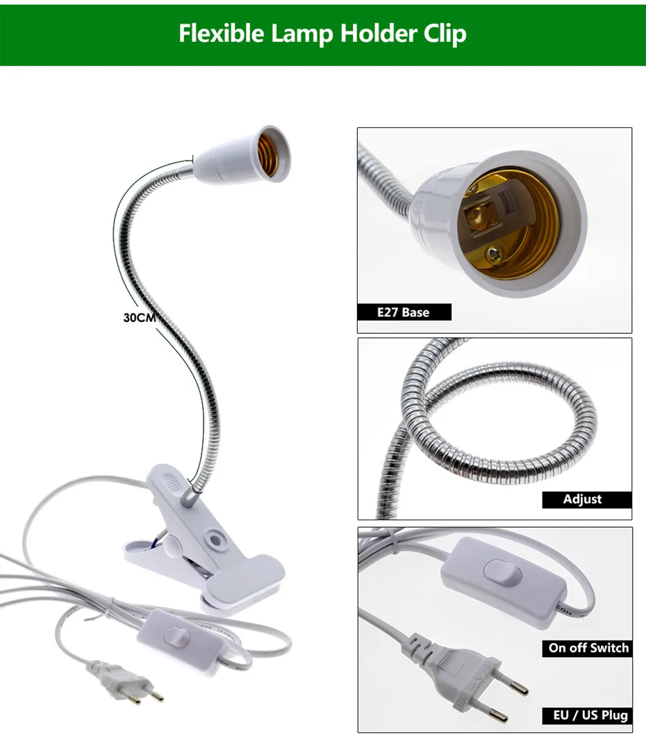 AC85-265V длина 33 см 43 см 53 см держатель светодиодной лампы с одной головкой штепсельная вилка ЕС/США E27 гибкий зажим с переключателем вкл/выкл Led Настольная лампа Led растительный силовой кабель