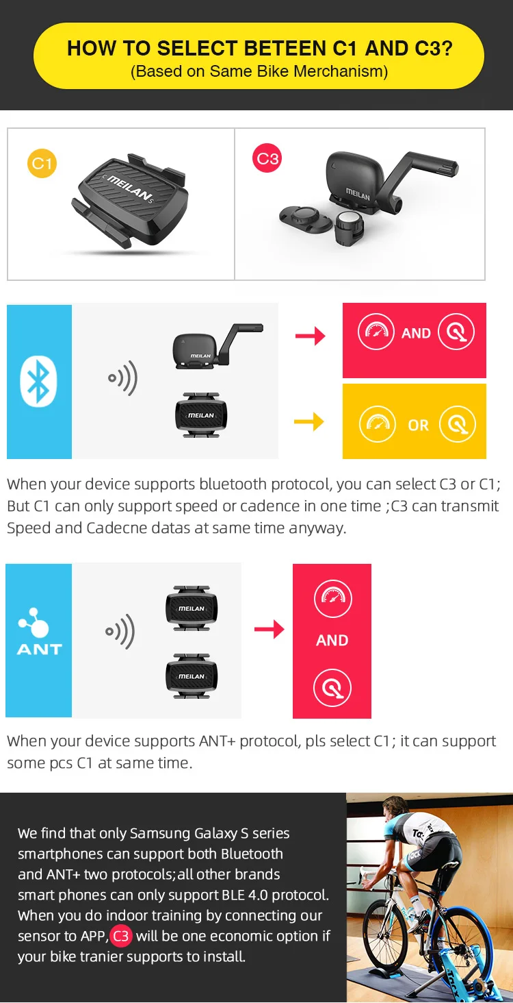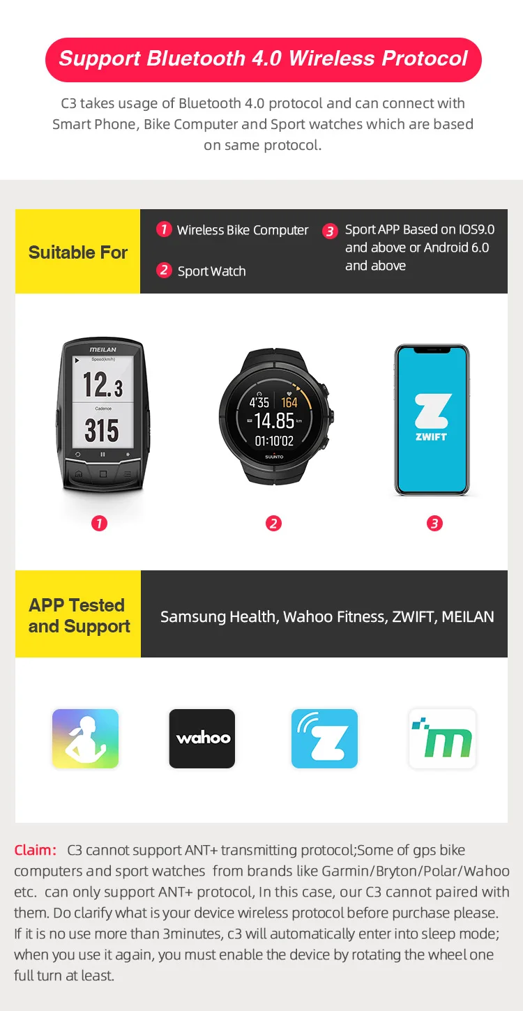 MEILAN C3 беспроводной датчик скорости велосипеда и датчик Каденции Водонепроницаемый Bluetooth BT4.0 sensore
