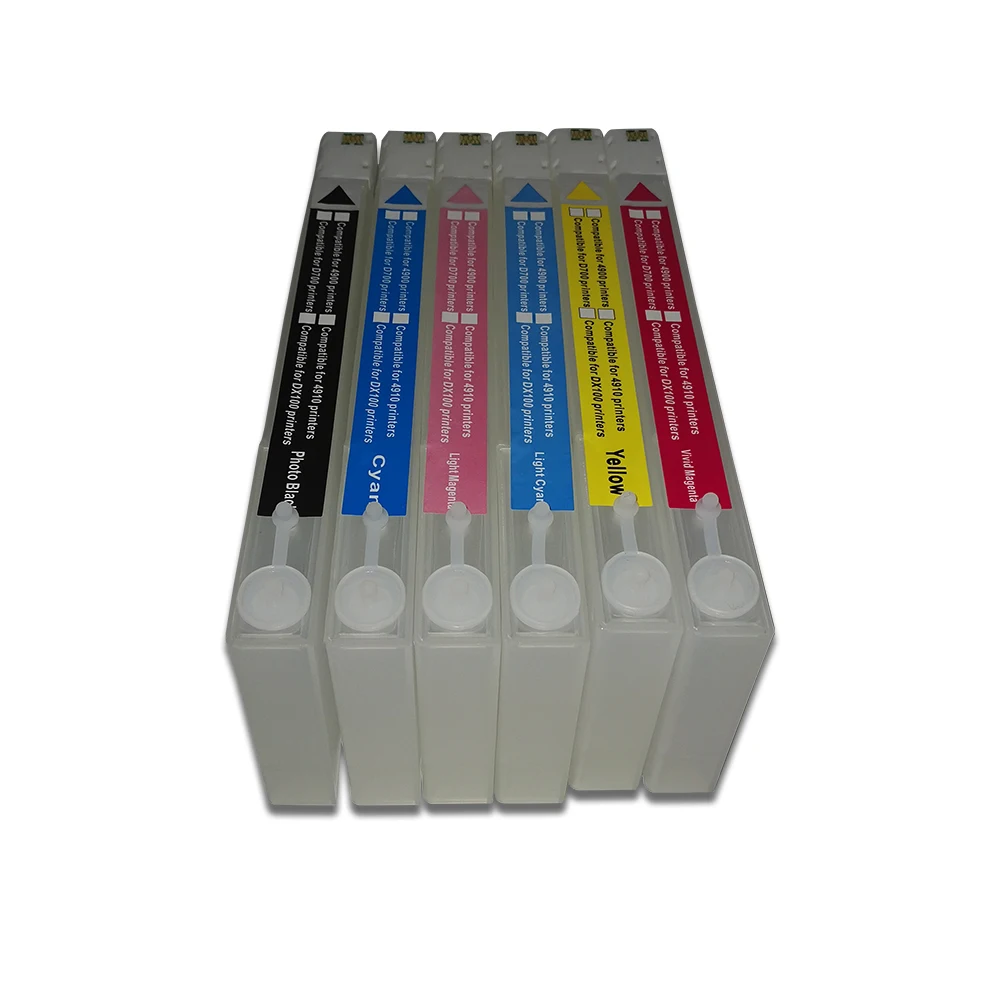 1: Название продукта: DX100 многоразовый картридж с чипами 2: Тип чипов: однократные чипы 3. Доступные цвета: BK/T7811 C/7812 M/T7813 Y/T7814 SB/T7815 Pink/T7816 4: Емкость: 700 мл 5: Гарантия: в случае обнаружения дефекта замена 1:1 товаров. 6: подходит для принтера fujifilm DX100
