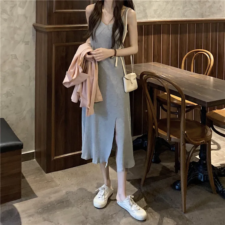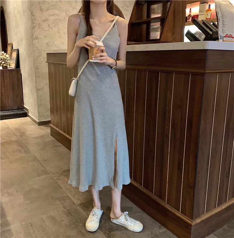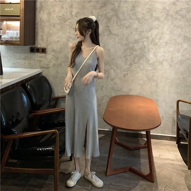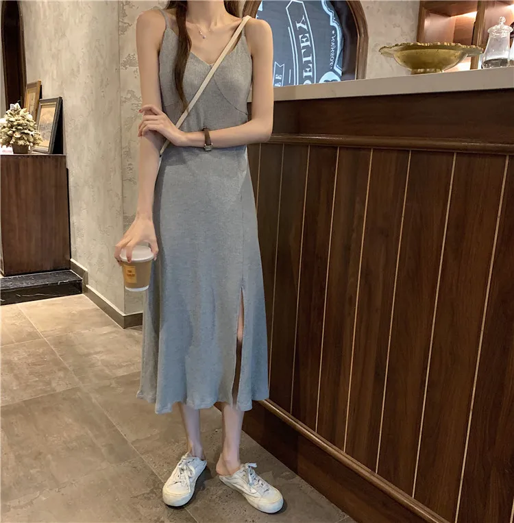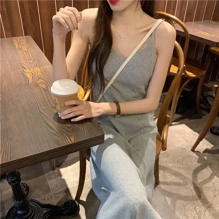 LUZUZI, сексуальное женское макси платье, серое, черное, платье на бретельках, женское, лето 2020, без рукавов, v-образный вырез, жилет, длинное, женское платье
