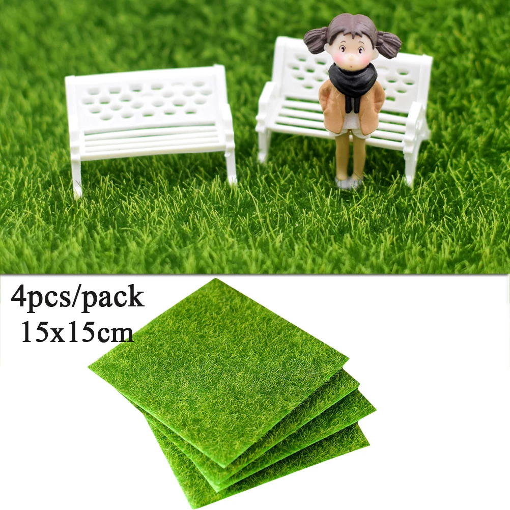 4 шт. 15x15 см DIY мини-Сказочный Сад имитация растения Искусственный мох декоративный газон зеленая трава микро ландшафтное украшение