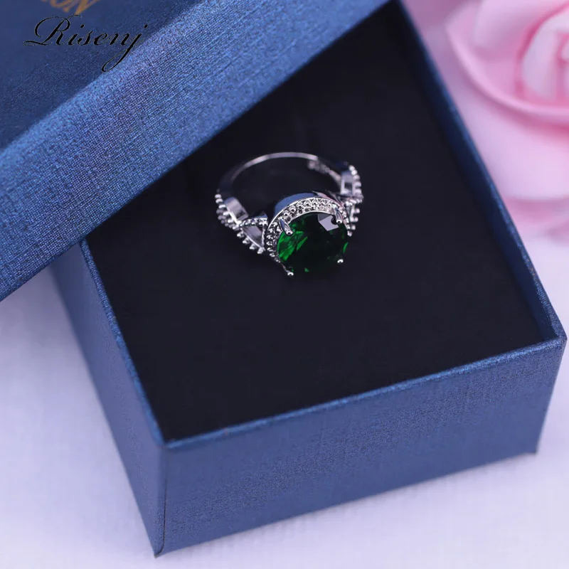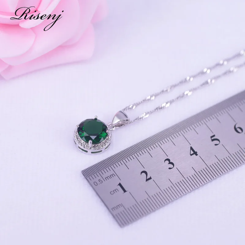 Женский ювелирный комплект из колье и кольца, из серебра 925 пробы, с зеленым камнем и белым кубическим цирконием