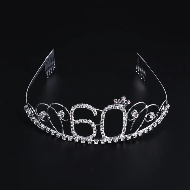 1x60 тиара на день рождения, хрустальные стразы, тиара на день рождения, королевская повязка в виде короны с заколкой для волос для мам или бабушек, 60-ое украшение для дня рождения