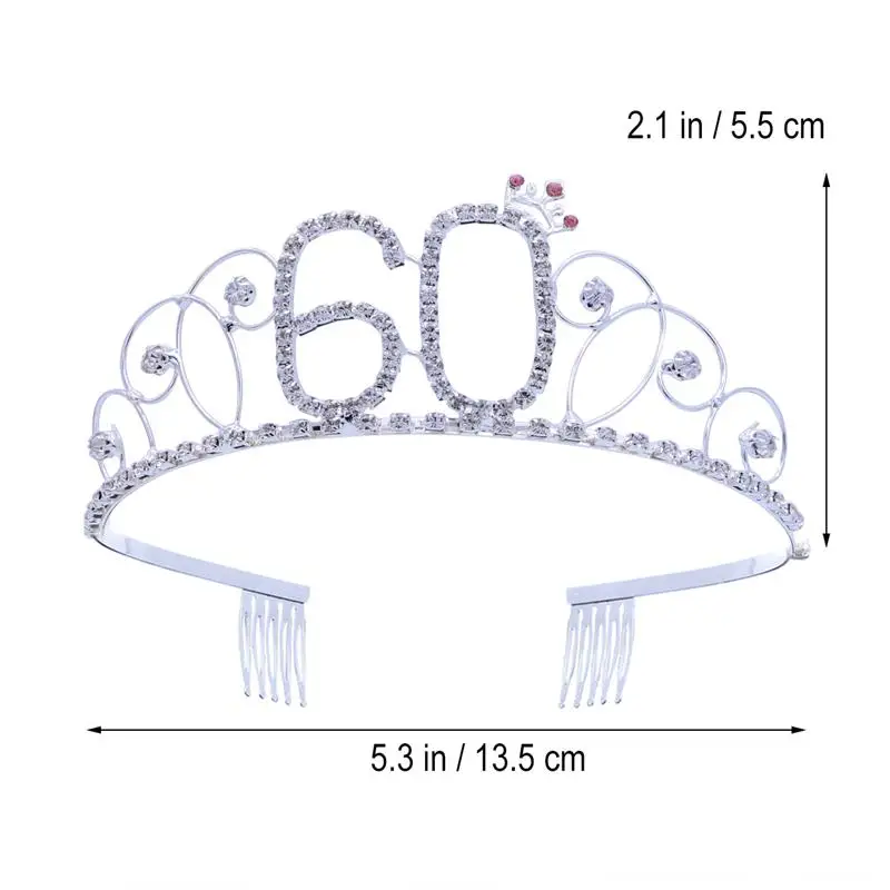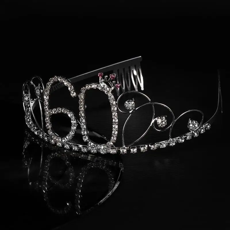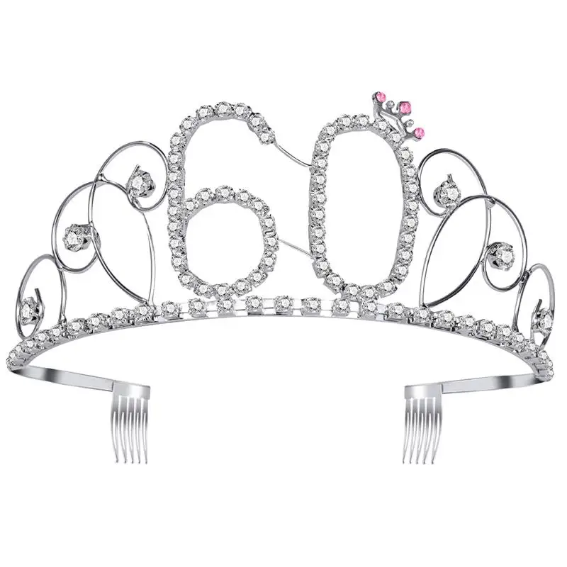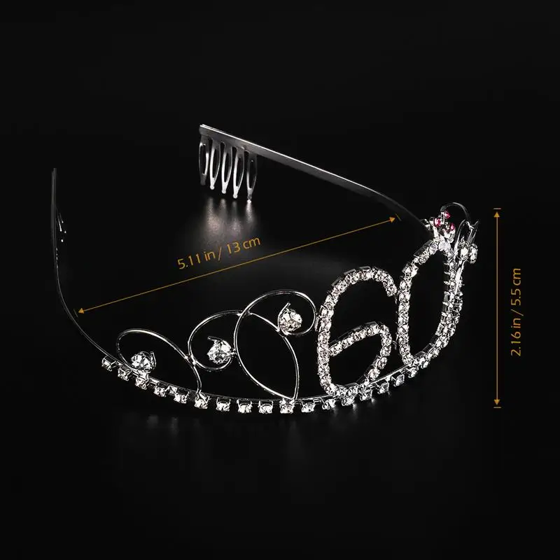 -Эта тиара украшена серебристым блеском и необычным волнистым дизайном с номером 60, который обязательно выделит владельца на ее 60-й день рождения в этот особенный день.