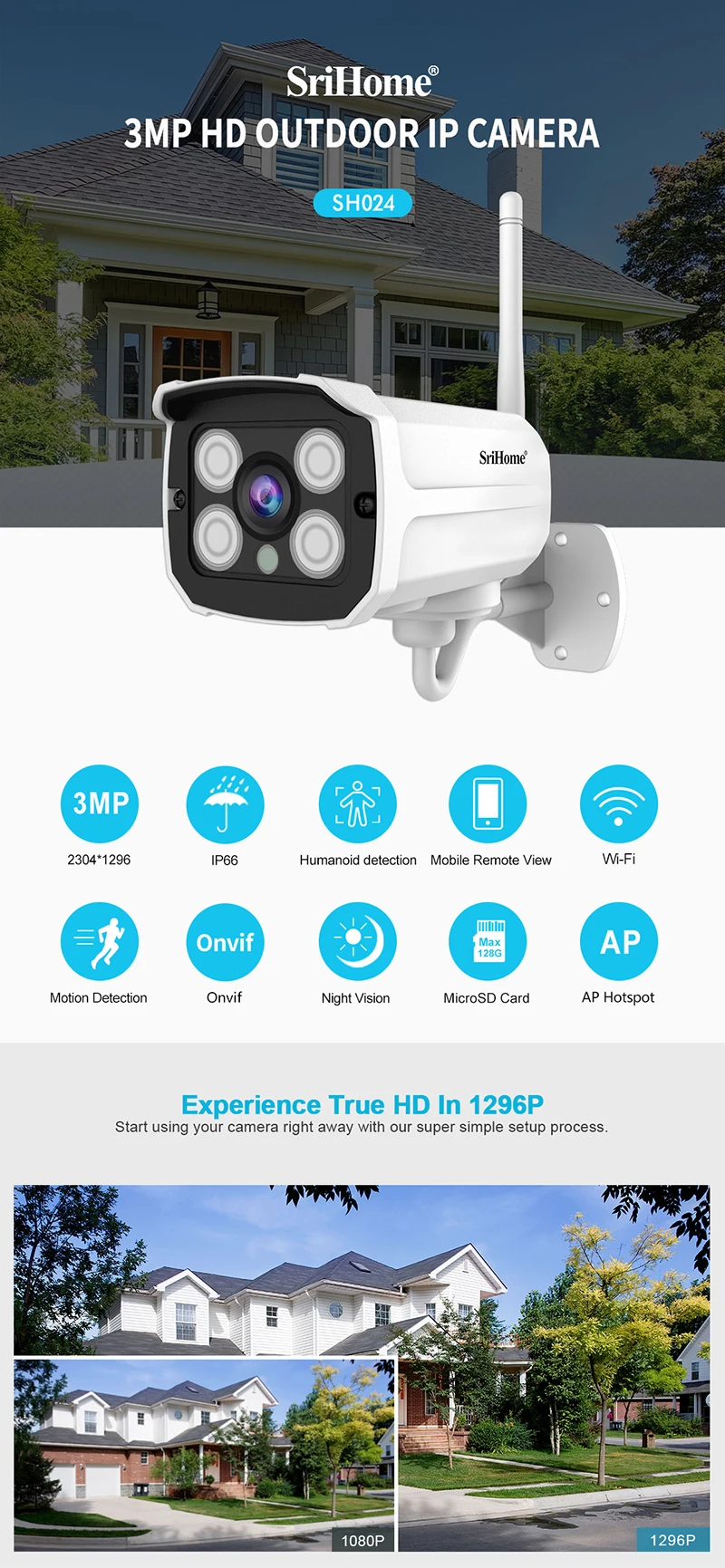 Беспроводная ip-камера Sricam SH024 3.0MP, умная уличная Водонепроницаемая камера наблюдения, камера AP Hotspot, управление авторизацией, CCTV HD Bullet, WIFI камера Onvifi, 128 ГБ, карта micro SD