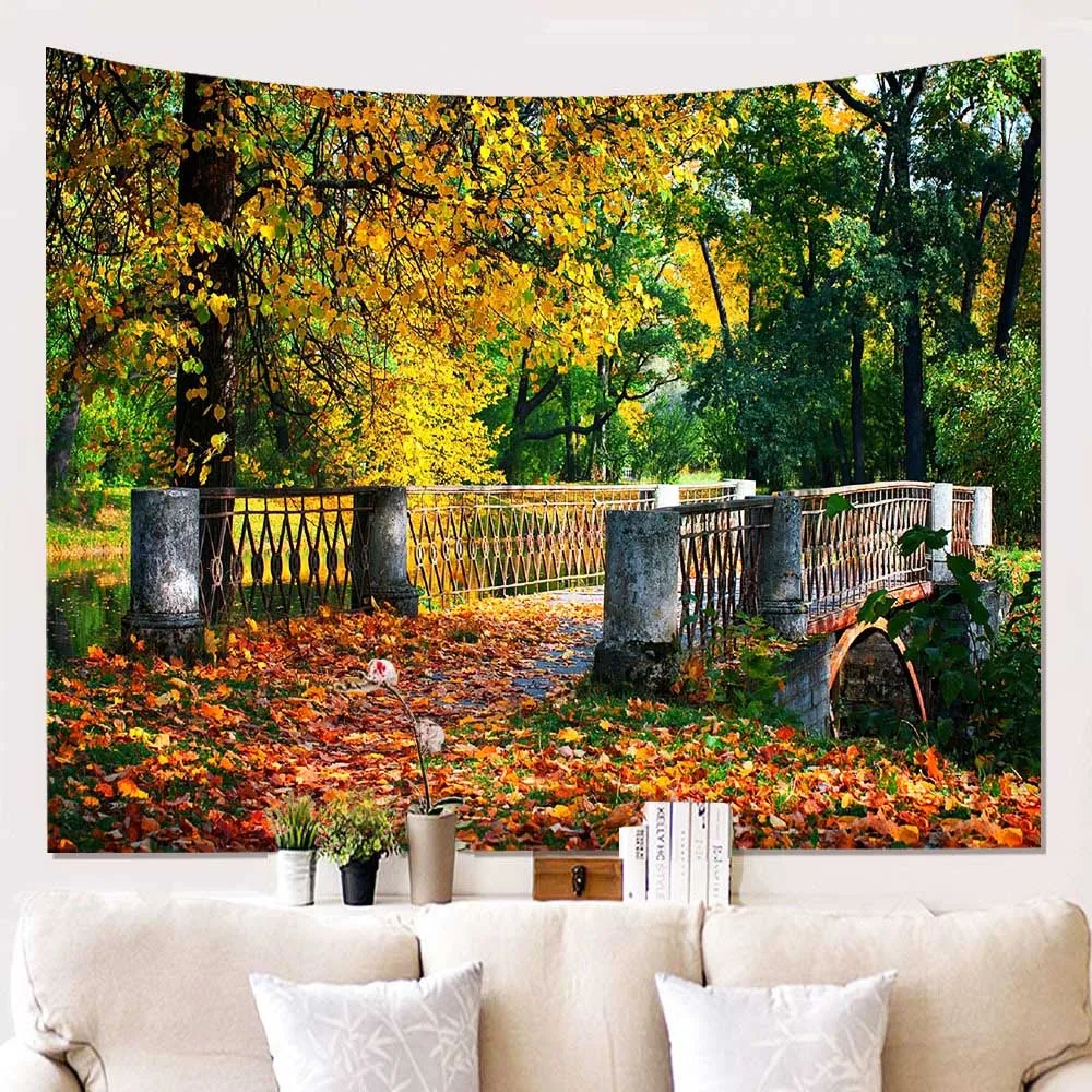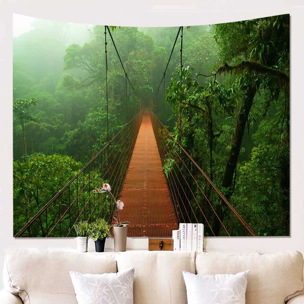 Psychedelic Forest Tapestry Wall Hanging Bridge Wall Tapestry Blanket Balloon Window Tapestry Headboard Polyester Yoga Shawl Mat