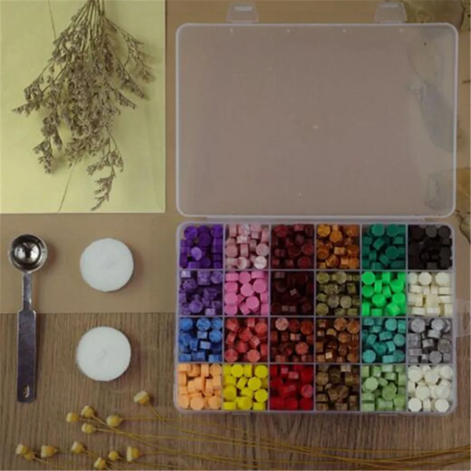 600 шт восковых бусин с коробкой для хранения (ложка, печь и Свеча не включены.)