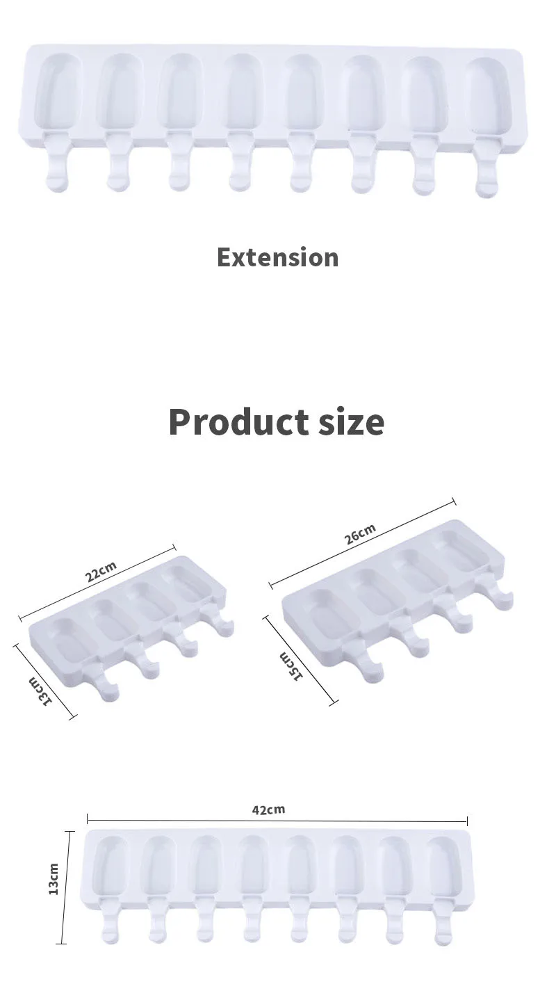 -Силиконовая форма для мороженого с 8 отверстиями Размер: 42x12,5x2 см, размер полости (каждого мороженого): 6,9x3,9 см, вес формы: около 176 г