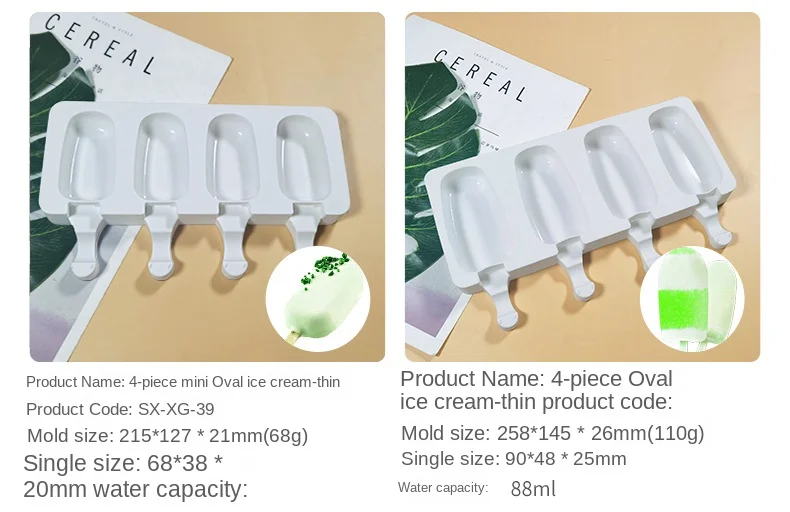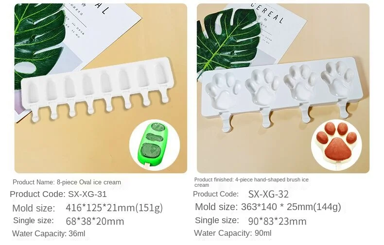 -1 отдельная силиконовая форма для мороженого Размер: около 8,5x6x4 см, вес формы: около 23 г каждая.