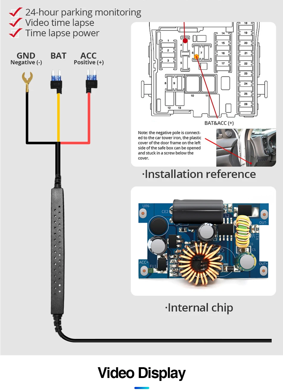 If you are worried about your car being damaged by someone else after parking, Please turn on parking monitoring, ensure that the recorder works 24 hours.If someone else hurts your car and the shock triggers the G-sensor, the DVR will immediately turn on and record the situation.