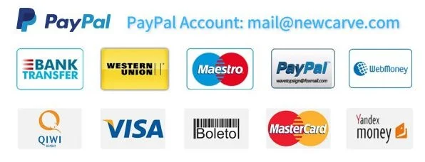 Мы принимаем PayPal, Escrow, кредитные карты, T/T, Western Union, WebMoney Qiwi wallet и бразильский Boleto.