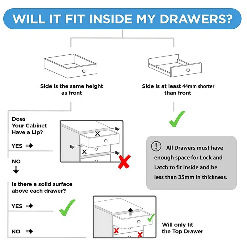 * Инновационный дизайн замка безопасности ребенка делает его лучшим замком шкафа для защиты от детей в любом месте!