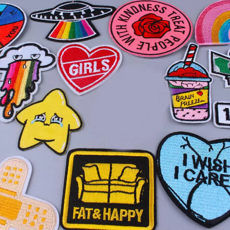 Pulaqi Радуга мультфильм патч железо на вышитые патчи для одежды полоски сердце винная камера напиток патч наклейки на одежду