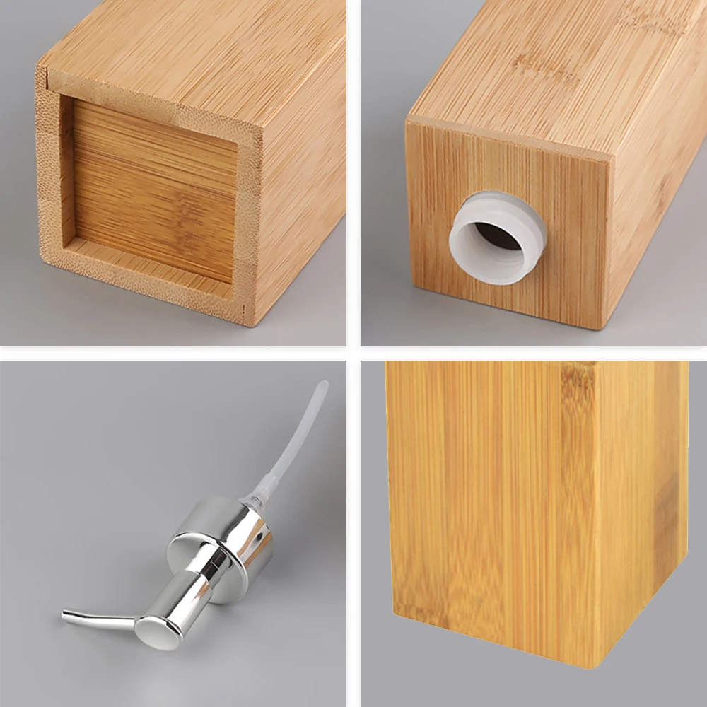 Дозатор мыла 500 мл изготовлен из бамбука и пластика для особого стиля. Диспенсер для мыла обеспечивает идеальное хранение жидкого мыла или лосьона для рук и обеспечивает аккуратность и чистоту поверхностей ванной комнаты, что также легко заправлять, подходит для широкого спектра ванных комнат и кухонных стилей.