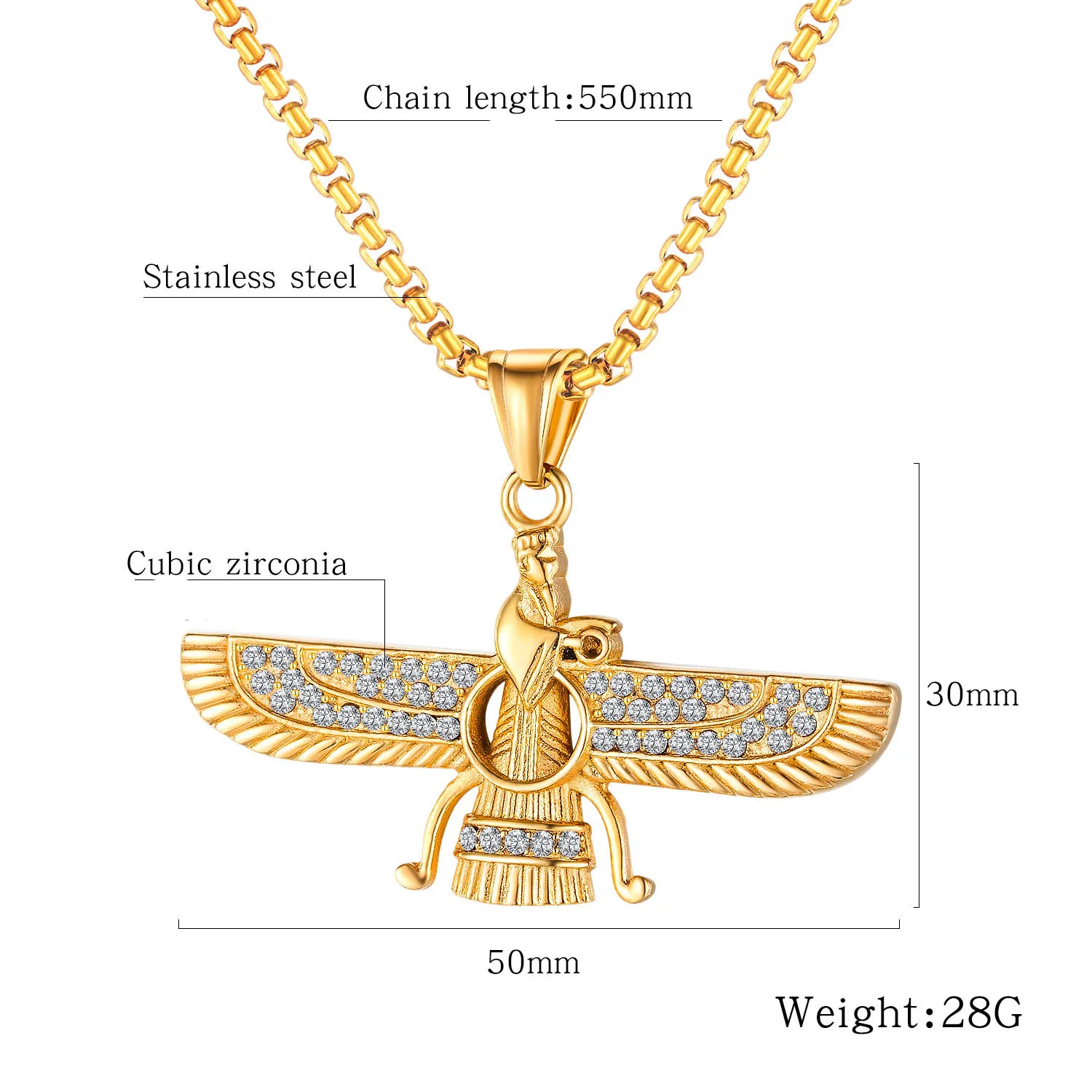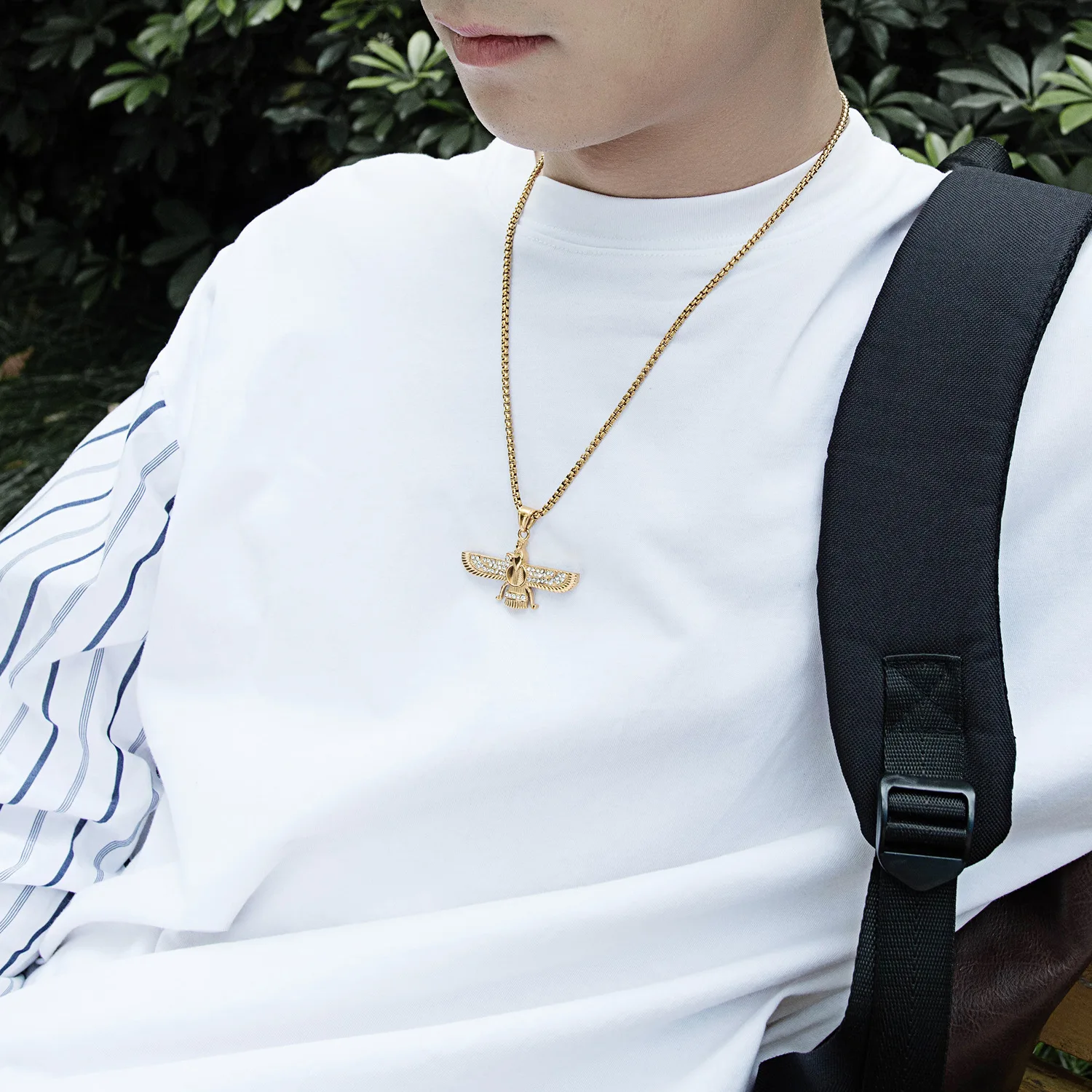 Zoroastrianism Wing Necklace Pendant for Men Gold Stainless Steel Ahura Mazda Zoroastrian Farvahar Religious Achaemenid Jewelry