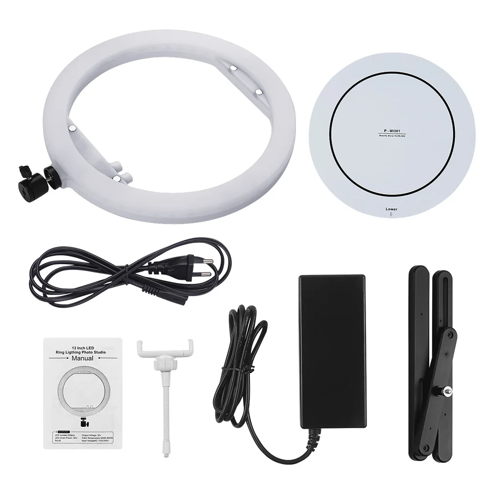 【Поддержка зеркал и смартфонов 】:Поставляется с зеркалом для макияжа 26,7 см/11,0 дюйма, которое может магнитно адсорбироваться на светодиодный кольцевой светильник. Свет с резьбовым отверстием 1/4 дюйма, может быть расширен держатель смартфона, поддержка около 57-84 мм ширина смартфона, подходит для iPhone X/Xs/XR/8/8 Plus/7/7 Plus, для Samsung Galaxy S9 Plus/S9/S8 Plus/S8 и большинства смартфонов android.
