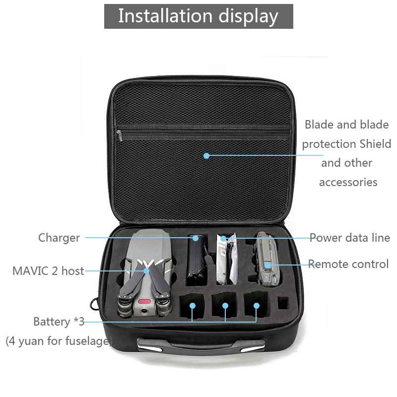 Нейлоновая сумка, сумка на плечо для DJI Mavic 2 Pro Zoom, чехол для путешествий, переносная коробка для хранения, водонепроницаемый чехол для костюма, аксессуары для дрона Описание: Удобный и модный, изготовлен из высококачественной водонепроницаемой нейлоновой ткани, практичный и красивый. Водонепроницаемый дизайн Это удобно и стильно, изготовлено из высококачественной водонепроницаемой нейлоновой ткани, практично и красиво. Он имеет большое пространство для хранения, что упрощает выбор и размещение. Он может вместить полный экран дистанционного управления и может вместить различные общие аксессуары. Использование супер водонепроницаемой ткани Оксфорд Снежинка, не беспокойтесь о дожде и влажной машине Особенности: Размер изделия: 34*27*10 см Вес изделия: около 1050 г. Упаковочный лист: 1 * mavic 2 Коробка Примечание: Другие аксессуары в комплект не входят