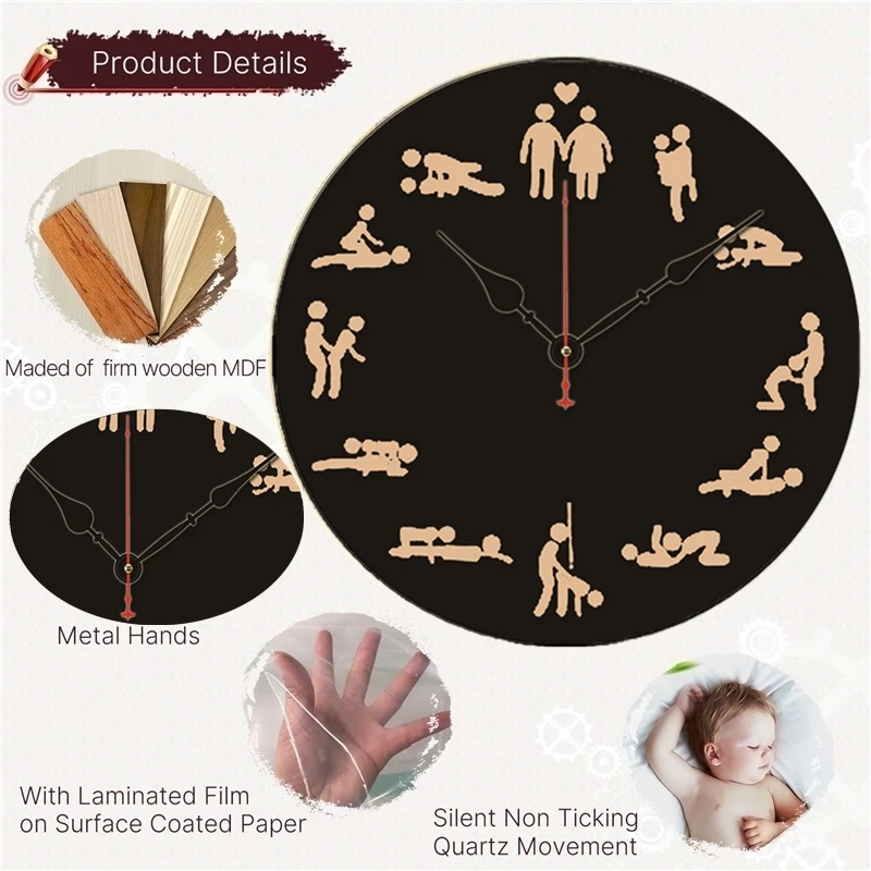 Это уникальные и забавные декоративные настенные часы разных размеров, которые удовлетворят все ваши потребности. Высококачественный кварцевый стреловидный механизм гарантирует точное время и абсолютно бесшумную окружающую среду. Точка времени часов сделана ежедневными любовными фотографиями пары или влюбленных. 12 позиций движения представляют собой 12 временных пунктов. Это художественные часы, которые добавляют вкусу жизни. Идеально подходит для спальни, ванной комнаты, гостиницы, бара, кафе, подарков влюбленным и т. д. привлекательный домашний декор.