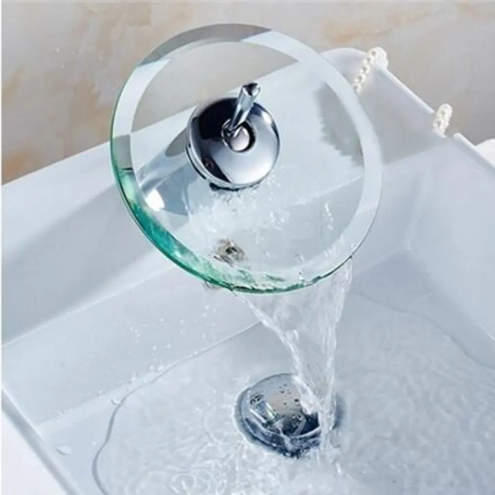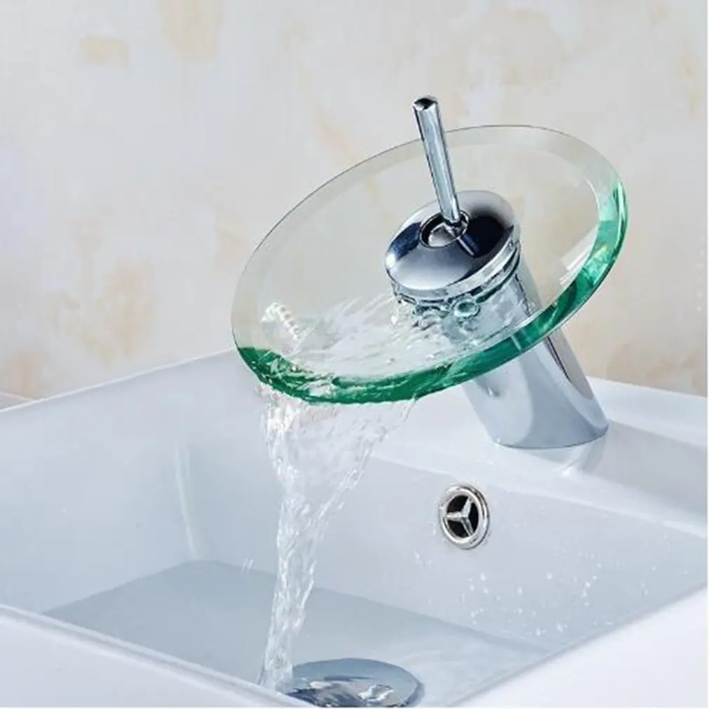Ванная комната раковина круглый стеклянный кран водопад латунный хромированный кран для раковины