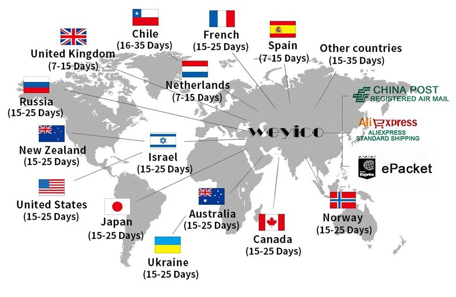 Sometimes it takes more days,such as bad weather,poor efficiency of transportation,special festival and other uncontrollable factors. You can track your parcel on the following websites using your tracking number : //www.17track.net/en //global.cainiao.com/ • If you have not received your order after 60 days from payment, please contact us. We can solve the trouble together.