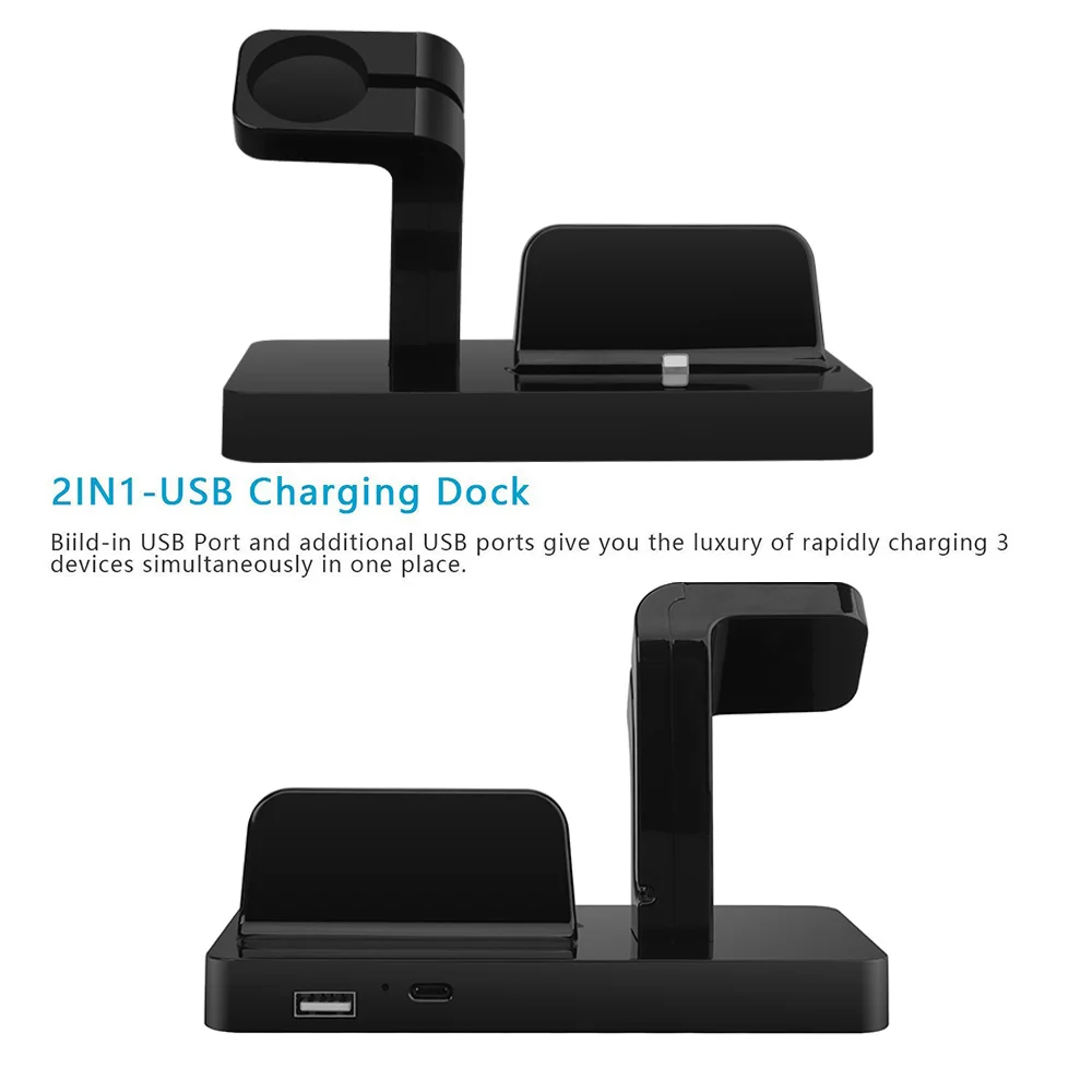 Описание: 2 в 1 для iPhone и для Apple Watch Подставка для зарядки. Разработан со встроенным usb-портом и разъемом освещения, скрытый вырез для скрытия зарядного кабеля. Резиновые прокладки на дне для защиты держателя зарядного устройства от скольжения. Параметры: Материал: АБС-пластик Интерфейс: USB Входной параметр: 220 (в) Выходной параметр: 5 (в) Ток зарядки: 2100 (мА) Модель телефона: для iPhone и Apple Watch Посылка: Да 1 х зарядная док-станция Зарядный кабель-1 шт.; Руководство пользователя-1 шт.; Без наручных часов iwatch, зарядное устройство Пожалуйста, обратите внимание: 1. Избегайте сильной вибрации, не разбирайте и не ремонтируйте самостоятельно. 2. Из-за ручного измерения возможна погрешность в размере около 1-2 мм.