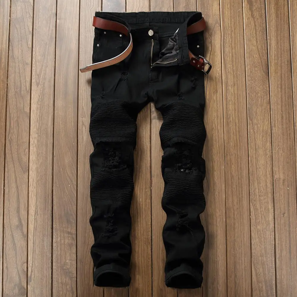 Мужские рваные джинсы S-lim, черные облегающие прямые брюки с дырками, модные брюки, 2019