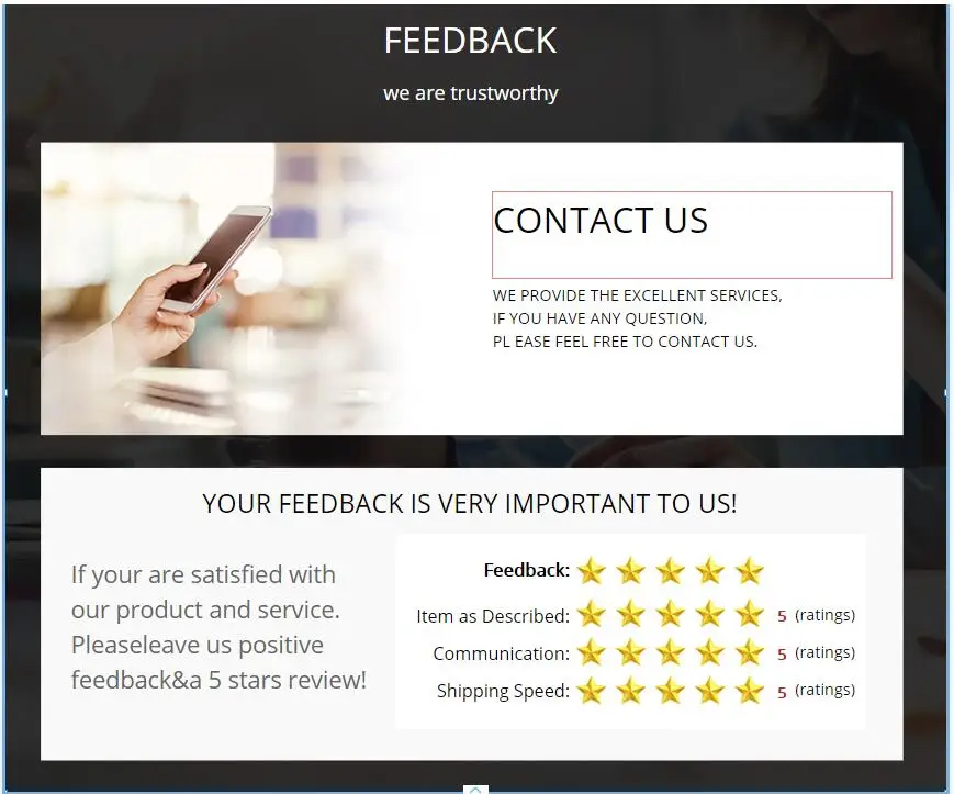 Your satisfaction and positive feedback is very important to us. Please leave feedback and 5 stars if you are satisfiedwith our