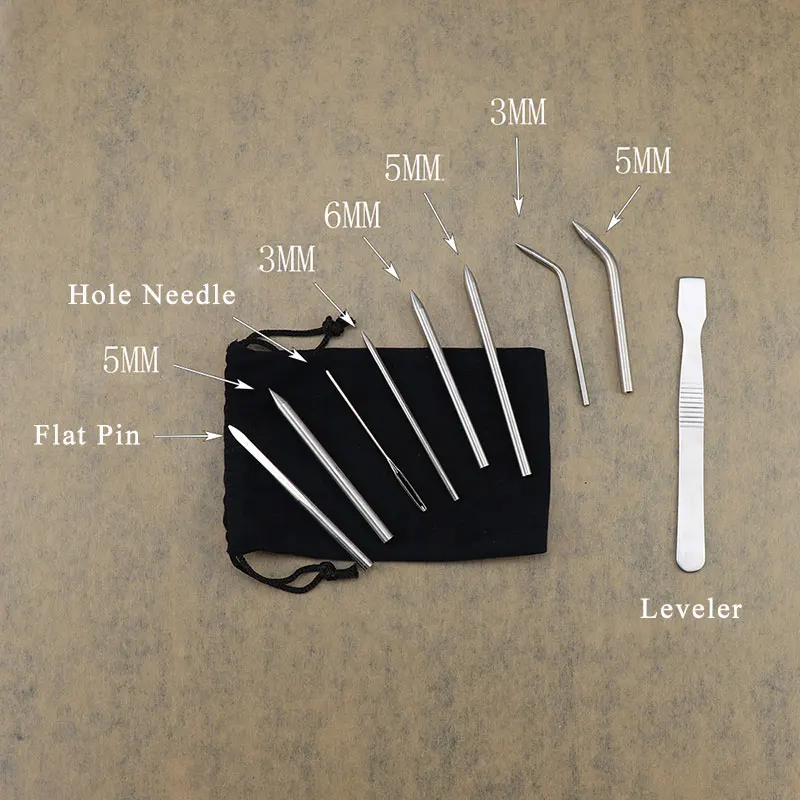 Комплект из 5 предметов: 3 мм + 5 мм + Плоский штифт + игла с отверстиями + нивелир + фланелевый мешок